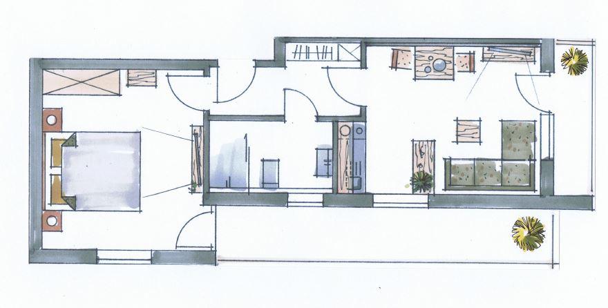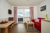 Die allergiefreundliche Wohnung 40m² groß, in der 1. Etage, verfügt über 1 separates Schlafzimmer mit TV und Balkon . Einen gemütlichen Wohn.- und Essbereich mit integr. Küche, sowie einen Südbalkon mit freien, traumhaften Bergblick.