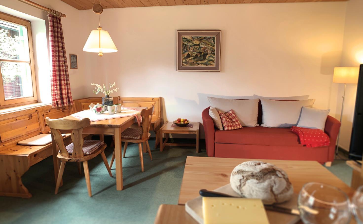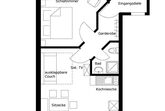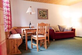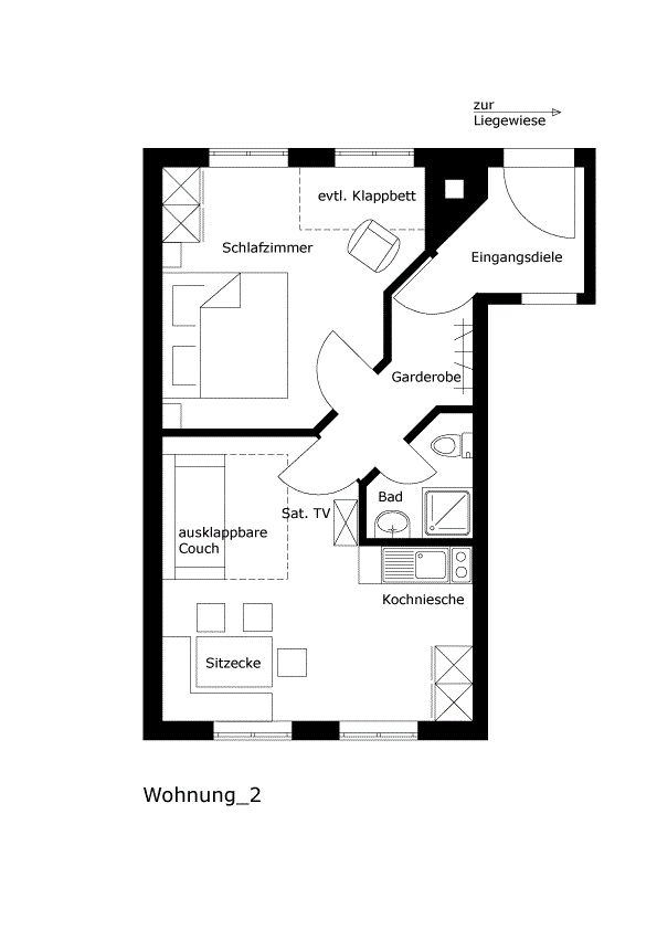 Unsere Wohnung Hirsch ist eingeteilt in ein Schlafzimmer, ein Wohnzimmer mit Küchenzeile, sowie Dusche (Fön)/WC und Flur. Im Schlafzimmer gibt es zusätzlich zum Doppelbett ein Zustellbett, im Wohnzimmer eine Doppelschlafcouch. Die Küche ist ausgestattet mit 2-Plattenherd, Spülmaschine, Mikrowelle, Kaffeemaschine, Wasserkocher und ausreichend Geschirr. Die Möblierung ist hell und freundlich.