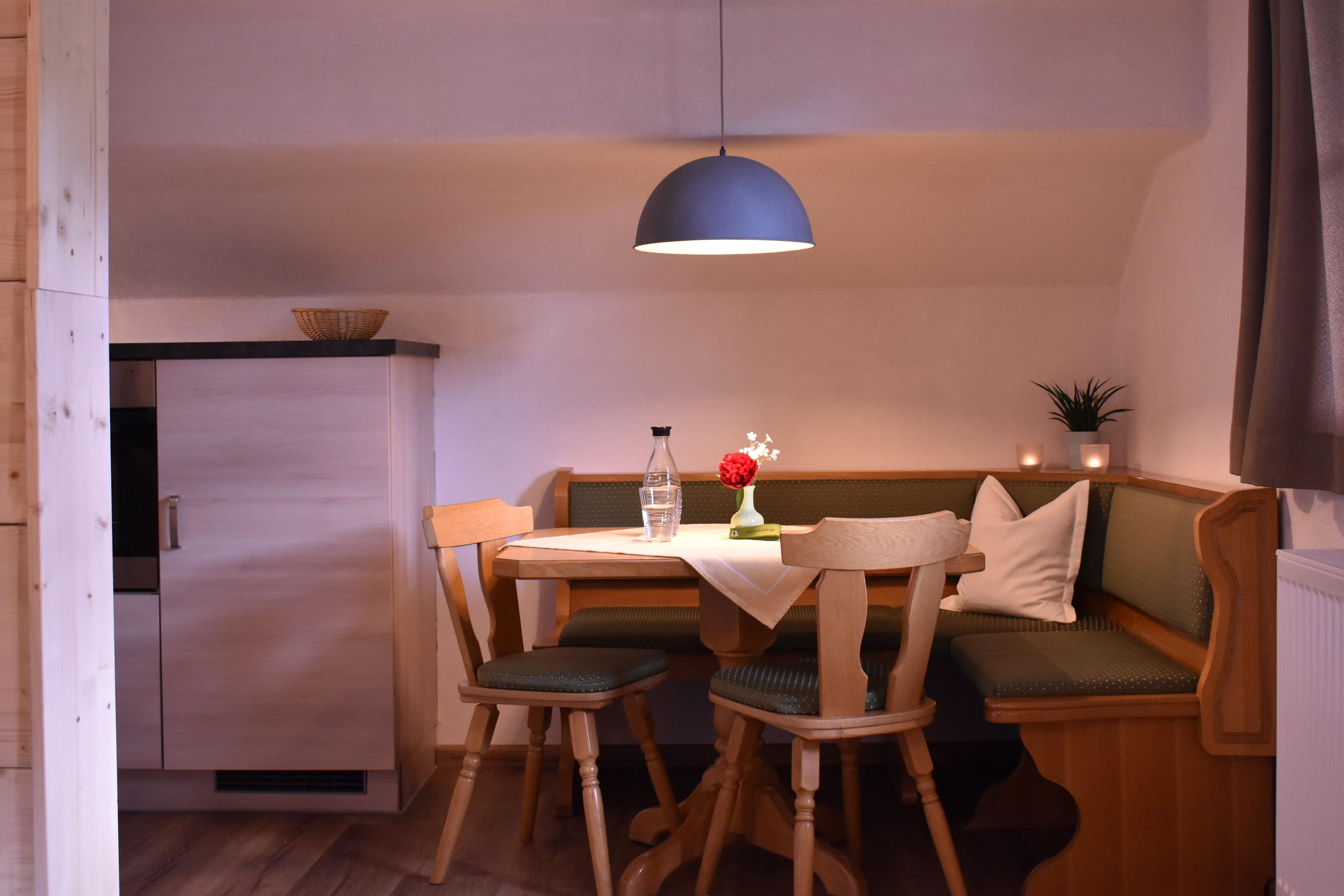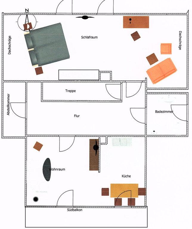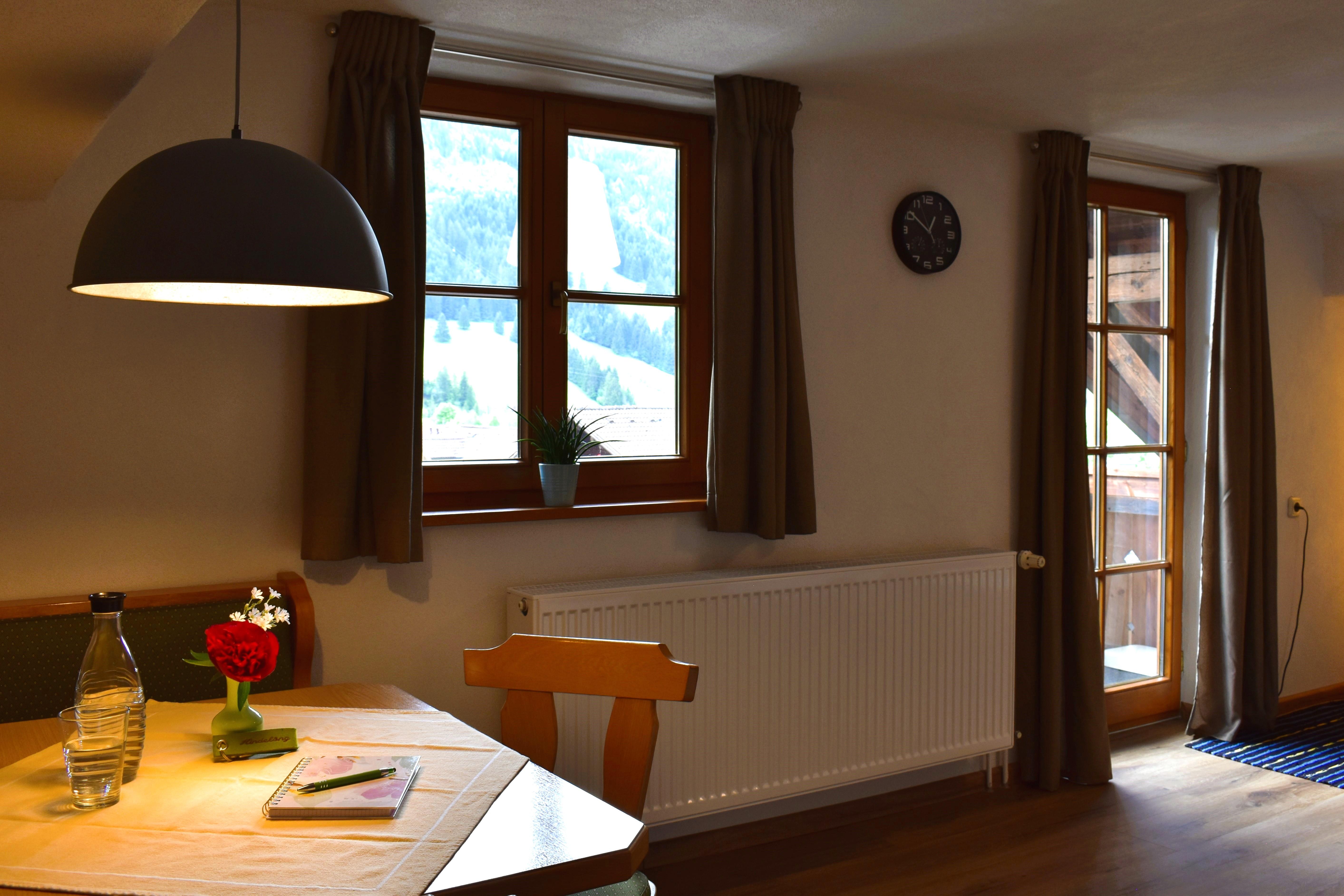 Unsere Wohnung Hornblick liegt im Dachgeschoss (Dachschrägen!). Ein separater Schlafraum (inkl. TV), Wohnraum und die Wohnküche lassen keine Wünsche übrig. Das Sofa im Wohnzimmer kann als Schlafcouch genutzt werden, ebenso ist ein Zustellbett im Schlafraum auf Anfrage möglich.