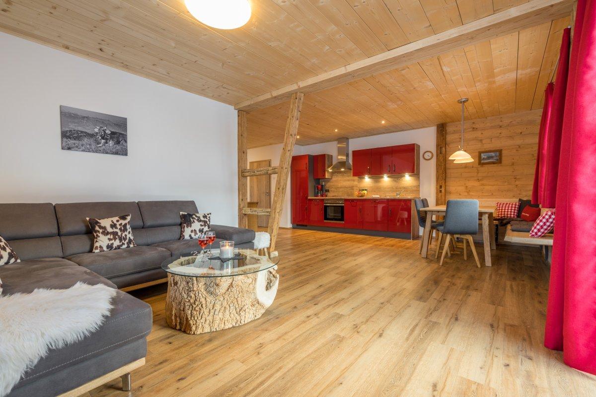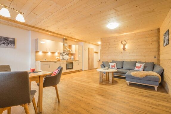 Unsere Wohnung Hirschstube **** 61 qm, ist ein gemütlicher Ort um zu entspannen und Ruhe zu genießen , sie ist im gemütlichem Landhausstiel eingerichtet und mit viel Holz und Elementen aus kostbarem Altholz kombiniert. Mit vollausgestatteter Küche, kuscheliger Wohnlandschaft, Bad mit Regendusche und sehr großem Schlafzimmer mit herrlicher Aussicht. Im Schlafzimmer ist auch Platz für ein drittes Bett. Auf ihrem eigenen Balkon können sie entspannt und die Sonne genießen.