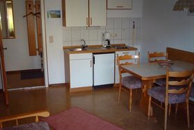 3 Raum Appartement mit Dusche/WC + separates Schlafzimmer + weiteres Zimmer mit Etagenbett + ausziehbare Couch im Wohn/Schlafraum + Küche mit kompletter Einrichtung + großer Südbalkon; Farbfernsehen; kostenloses W-Lan + Bettwäsche und Handtücher inklusive + im 1.OG; ca. 48qm