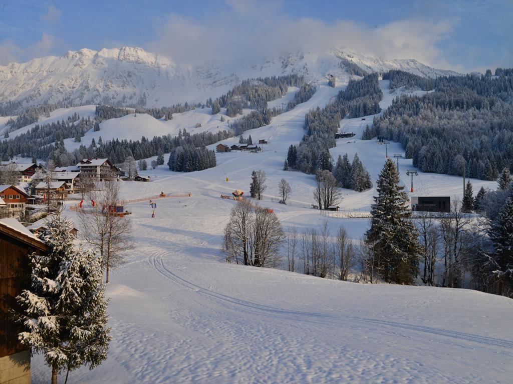 wir bieten zwei Ferienwohnungen, die alle freien Blick vom großen Südbalkon auf die Berge von Oberjoch, insbesondere deren Skipisten, haben. Jede Wohnung hat ein separates Schlafzimmer mit Doppelbett.