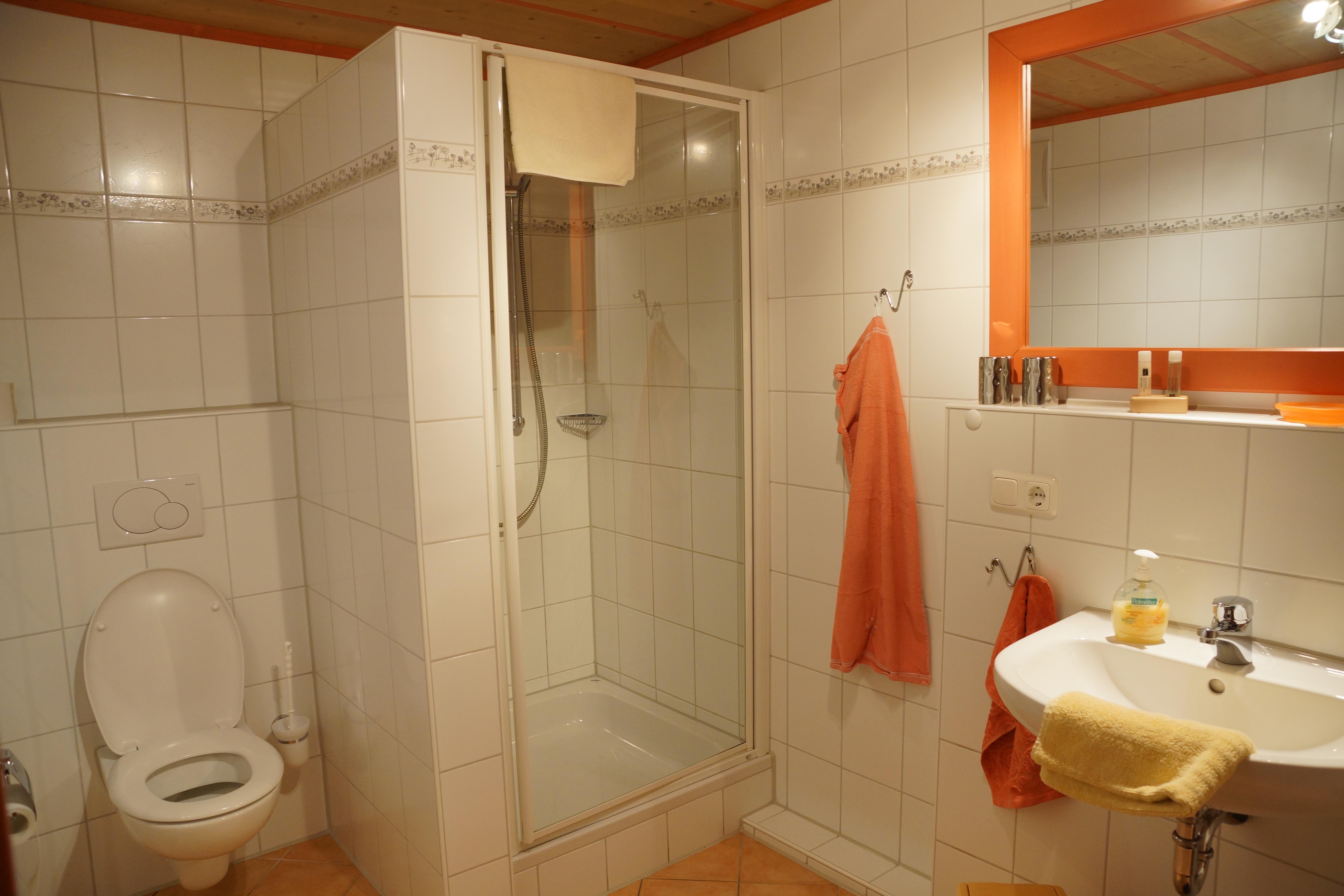 Großzügiges Bad mit Fußbodenheizung.