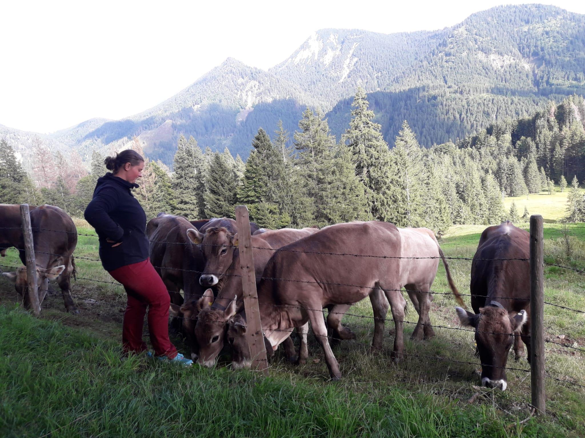 Tiere: Kühe,Jungtiere, Kälber, 1 Haflinger, Esel, Hasen, Katzen, Meerschweinchen.