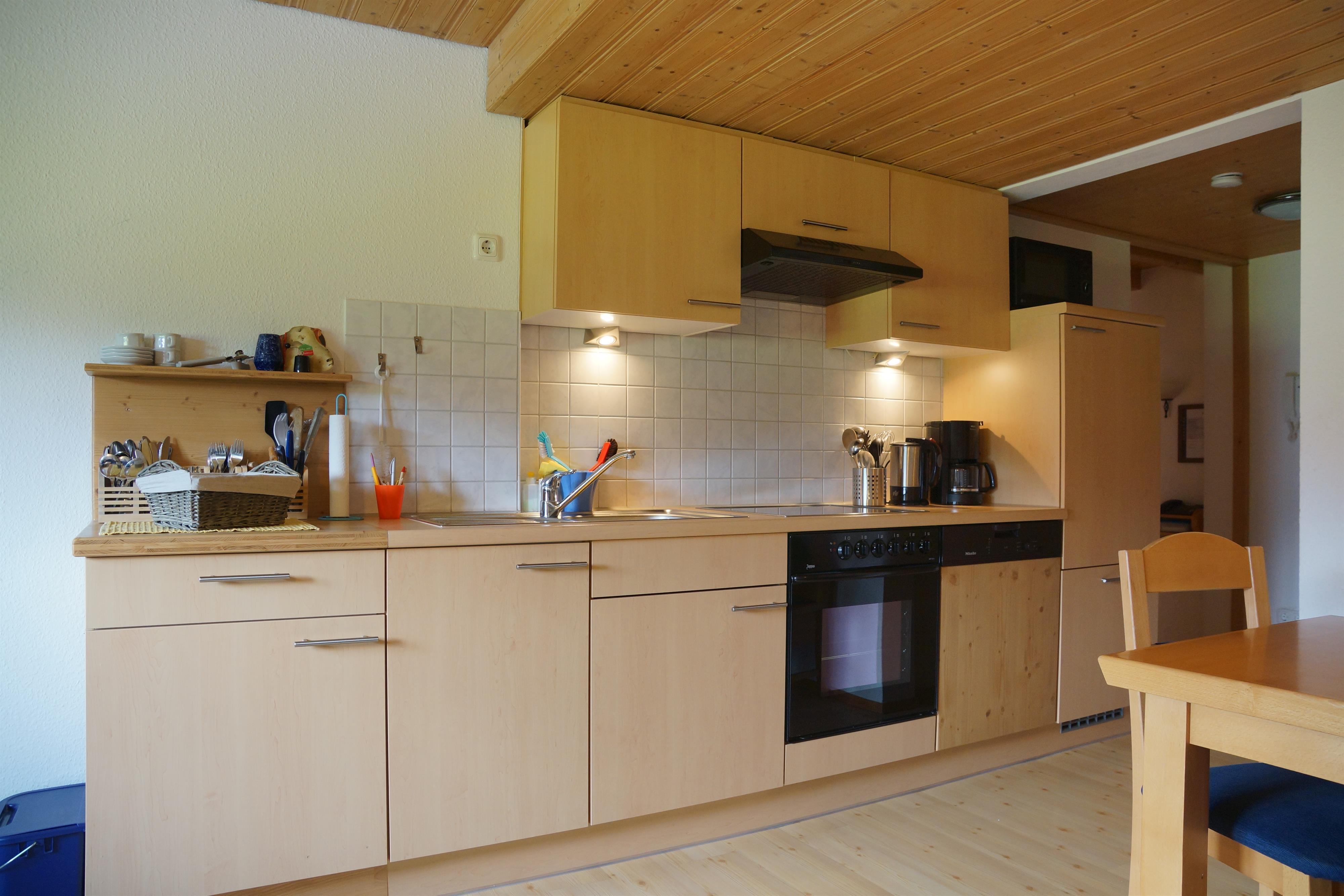 Küchenzeile mit Ceranfeld, Backofen, Mikrowelle.,Geschirrspülmasch. Kinderzimmer m. Spielgalerie zum Schlafen/Spielen. Eckbank und Couchgarnitur.