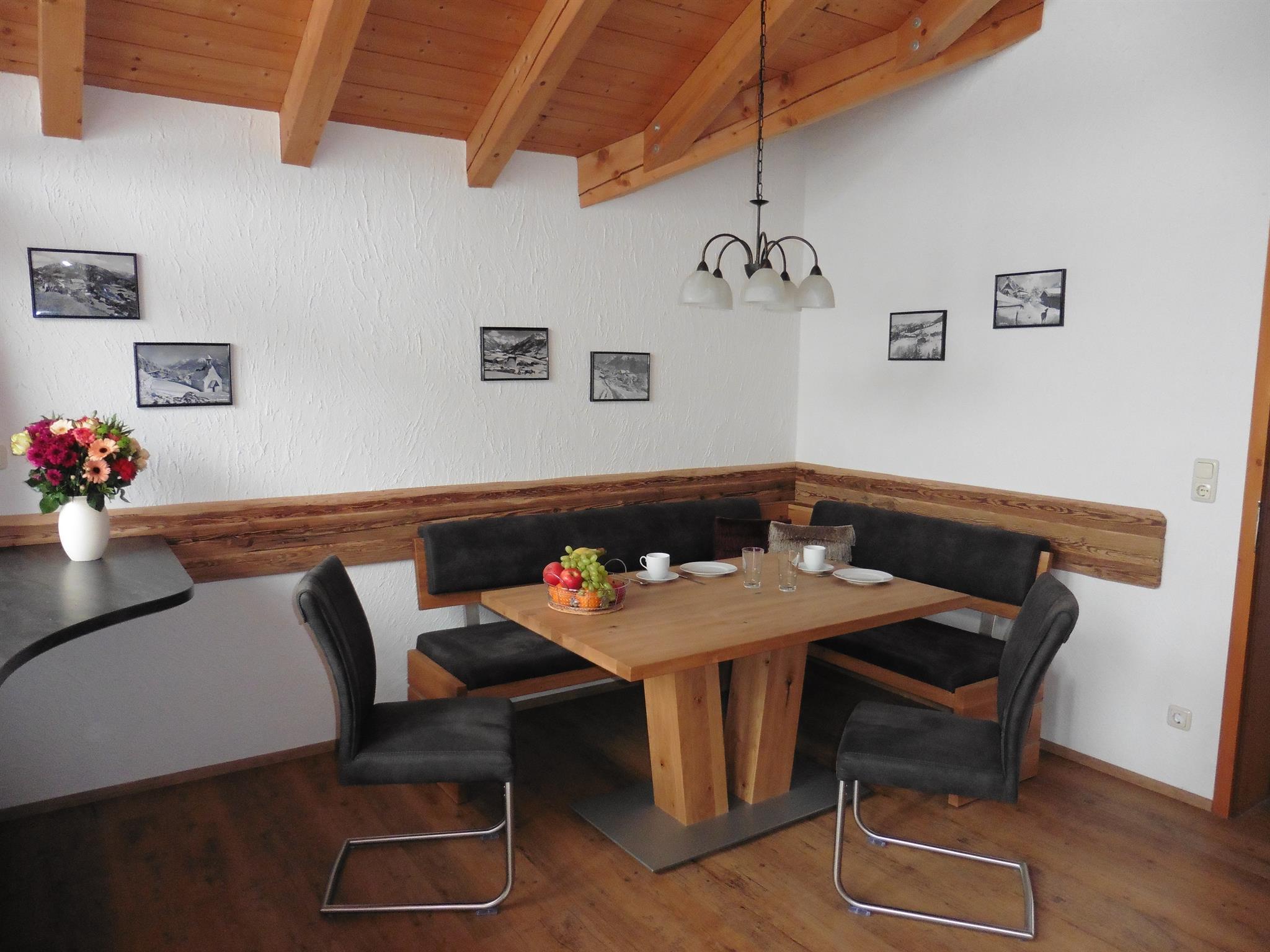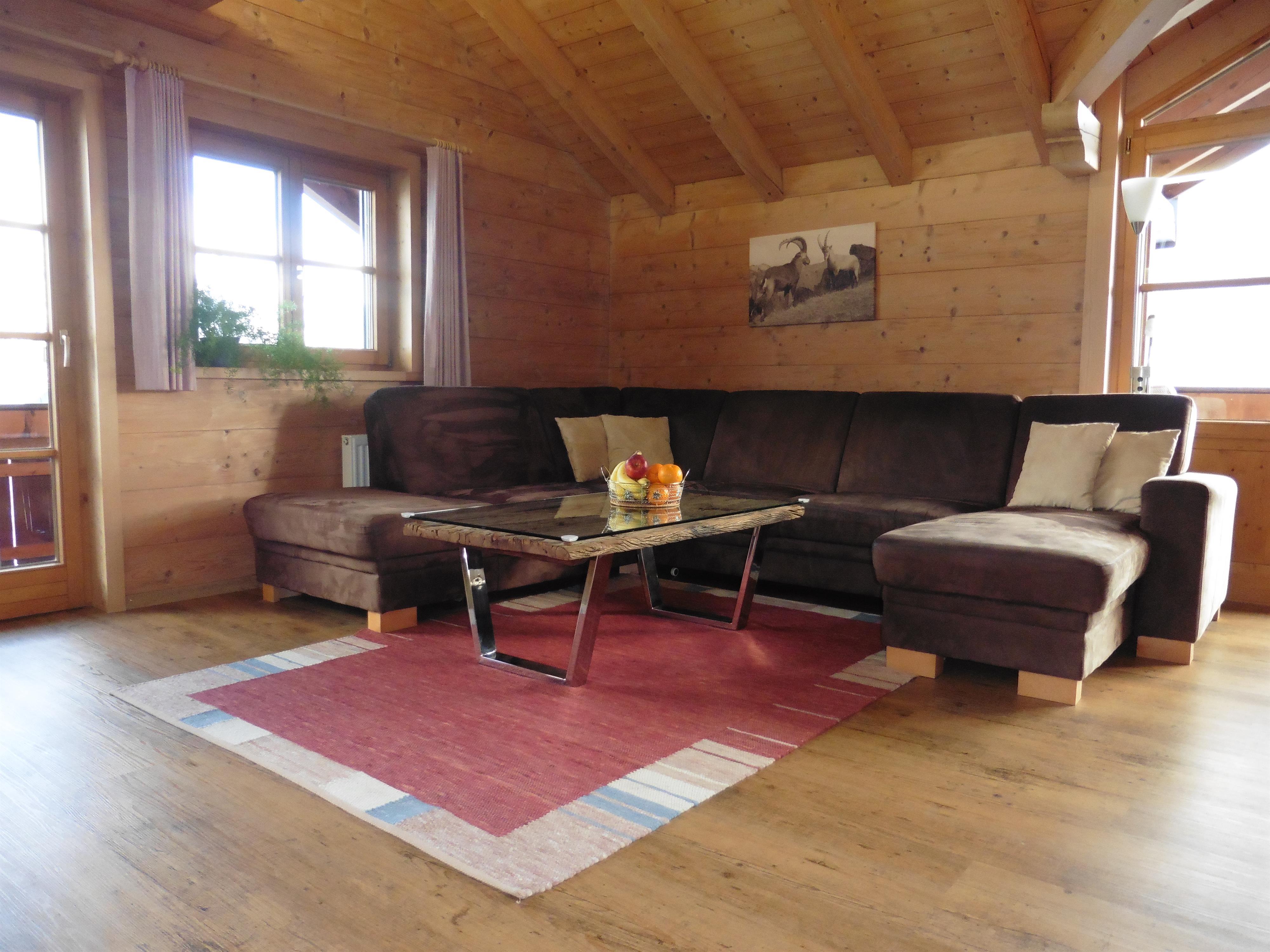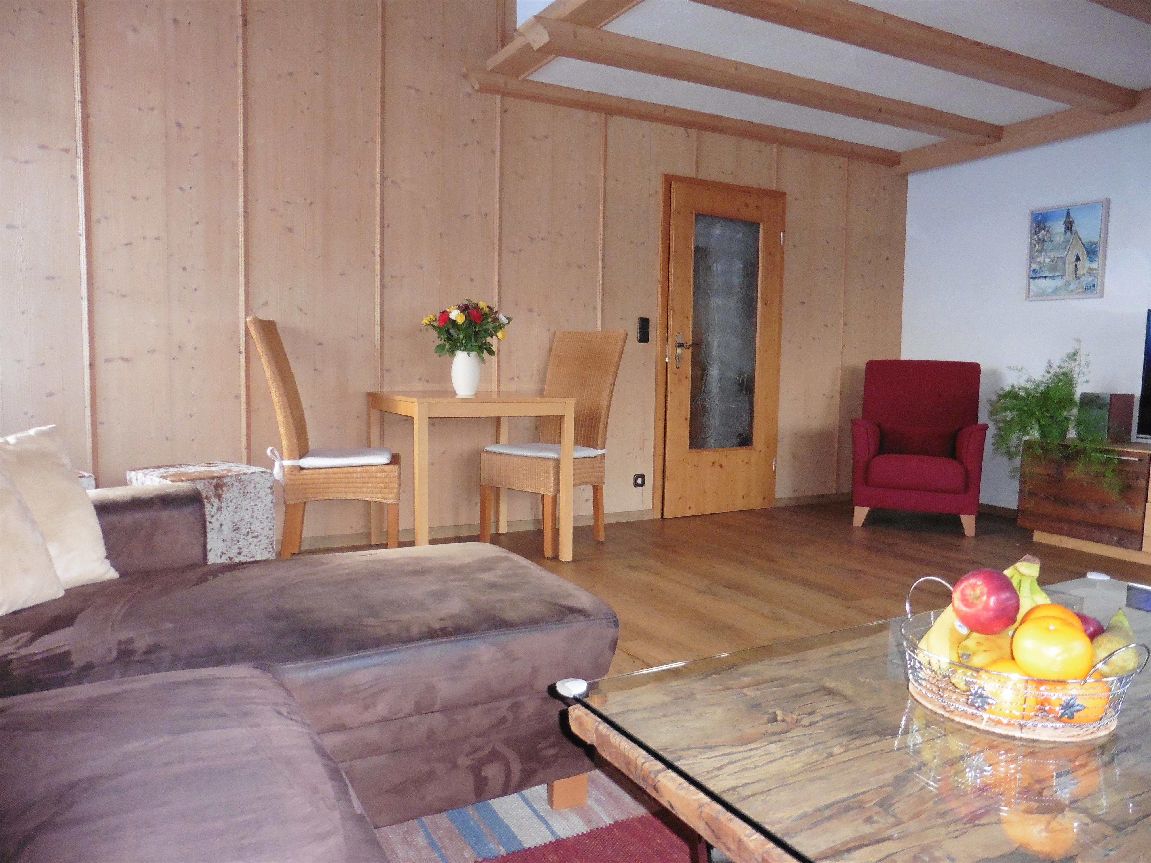 Ausstattung: Komplett neuer Vinylboden in der gesamten Wohnung, sichtbarer Dachstuhl, Wohnküche mit Spülmaschine, großes Wohnzimmer mit Stereoanlage und Sat TV, 2 Schlafzimmer, Bad mit Fussbodenheizung, neuer begehbarer Dusche und Waschmaschine, separates WC, 2 Balkone mit freiem Blick in die Berge, Terrasse und Liegewiese, eigene Infrarotkabine.