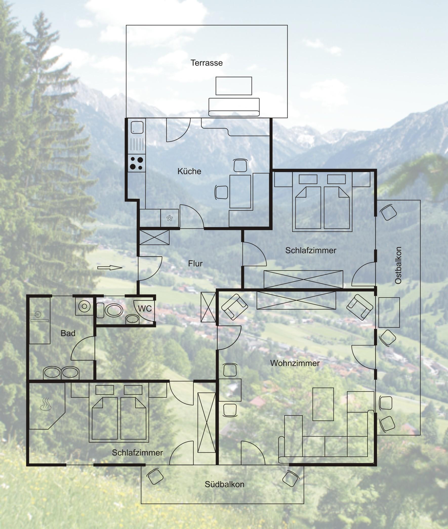 ruhigen Südhanglage, mit herrlichem Blick auf die Ostrachtaler Berge.