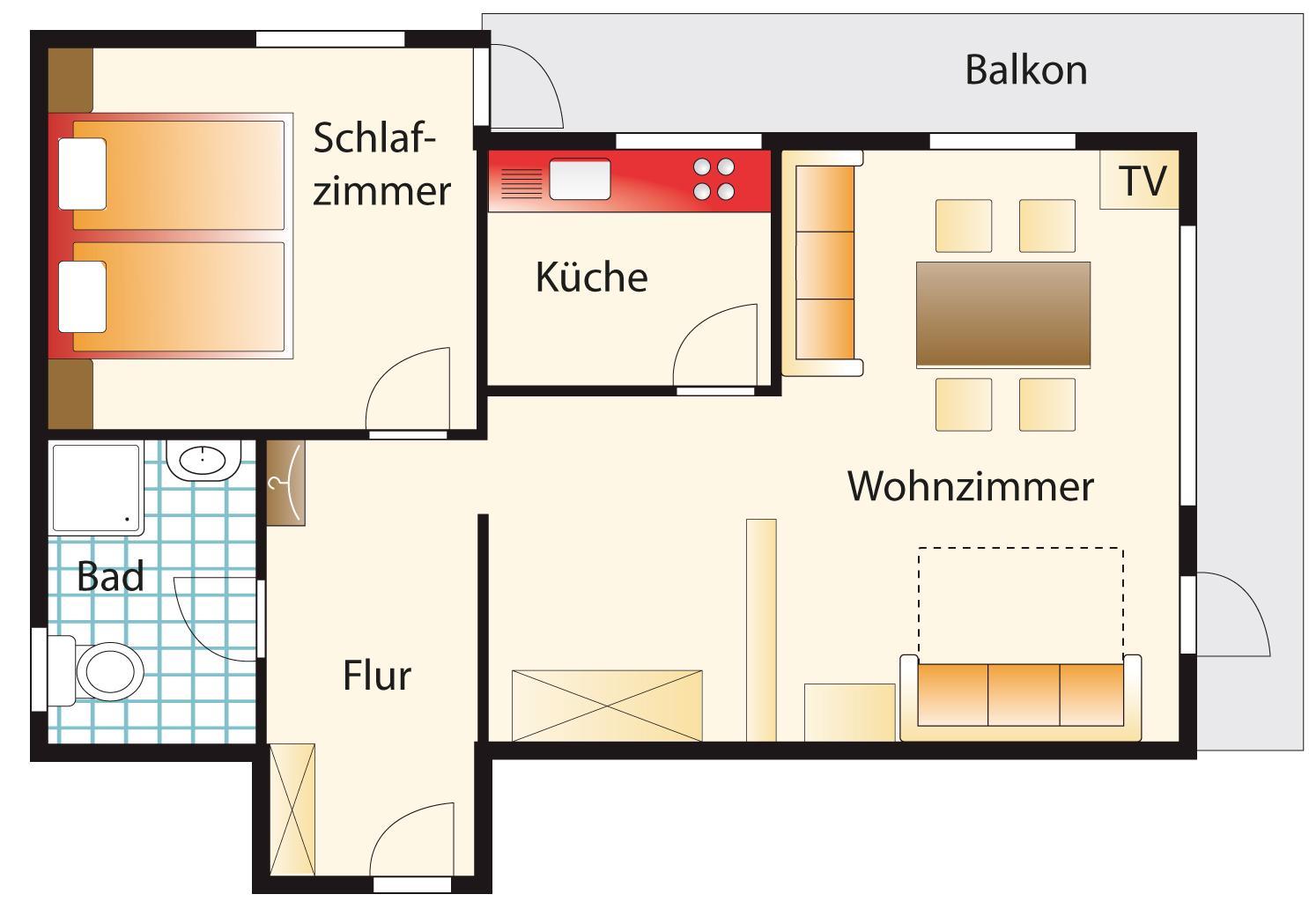 ca. 75 qm für 2 Erwachsene und 2 Kinder