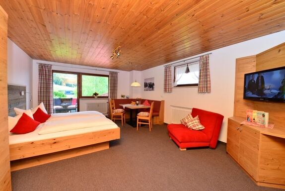 Ein Urlaub im Landhaus Hosp, ist immer eine Reise wert. Unser Haus liegt ruhig und sonnig direkt an der Skipiste mit freiem Blick in die Berge. Wir sind 80m von der Schwandenbahn entfernt, d.h. Sie schnallen Ihre Ski vor dem Haus an und sind schon auf der Piste. Alle unsere Wohnungen haben einen Südbalkon oder Terrasse und bieten vom Single bis zur Familie mit mehreren Kindern jedem das passende Urlaubsambiente. Kostenloser Parkplatz am Haus. Wir freuen uns auf Sie.