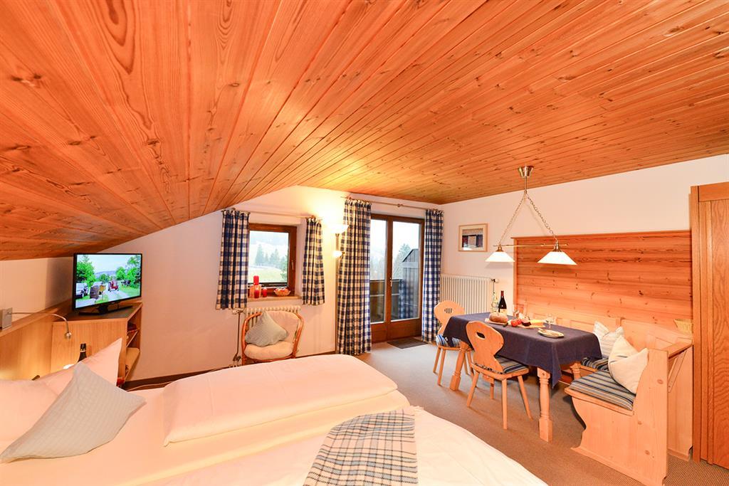 Unsere gemütlichen Ferienwohnungen sind komplett eingerichtet und verfügen alle über einen Südbalkon oder eine Südterrasse mit Blick in die Berge. Die freie Lage unseres Hauses bietet Ihnen einen schönen Garten mit anschließender großer Wiese, Platz zum Spielen für Kinder ist reichlich vorhanden.