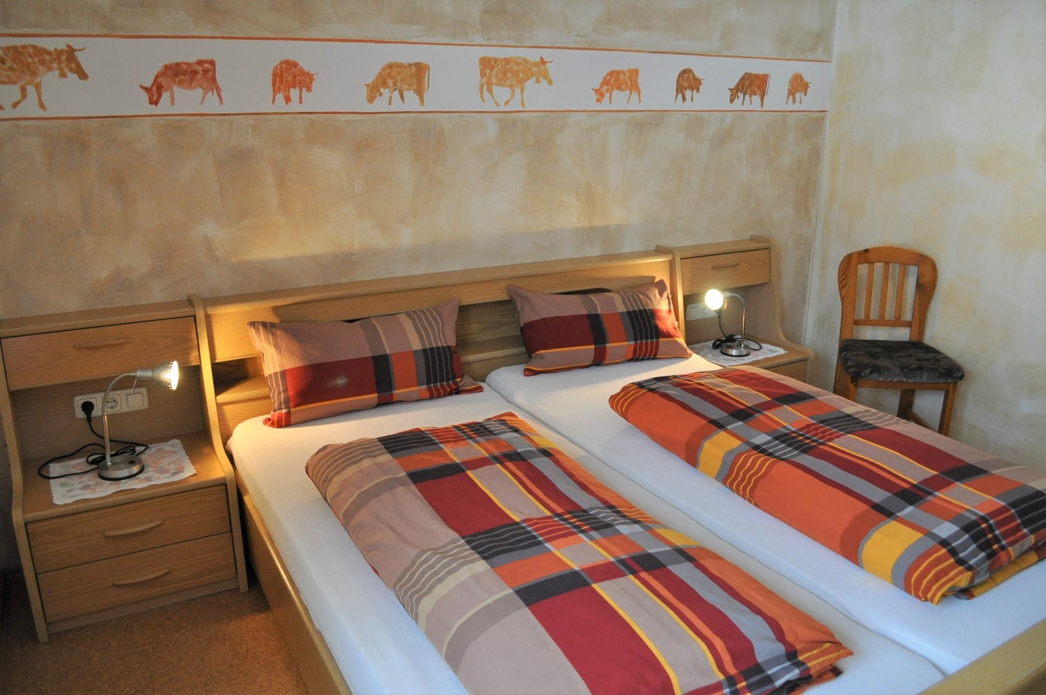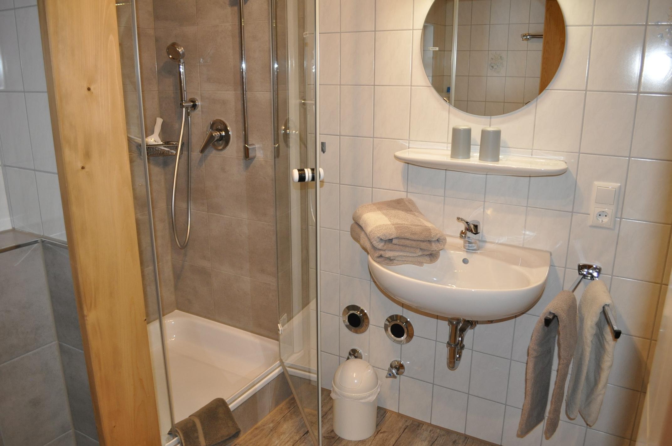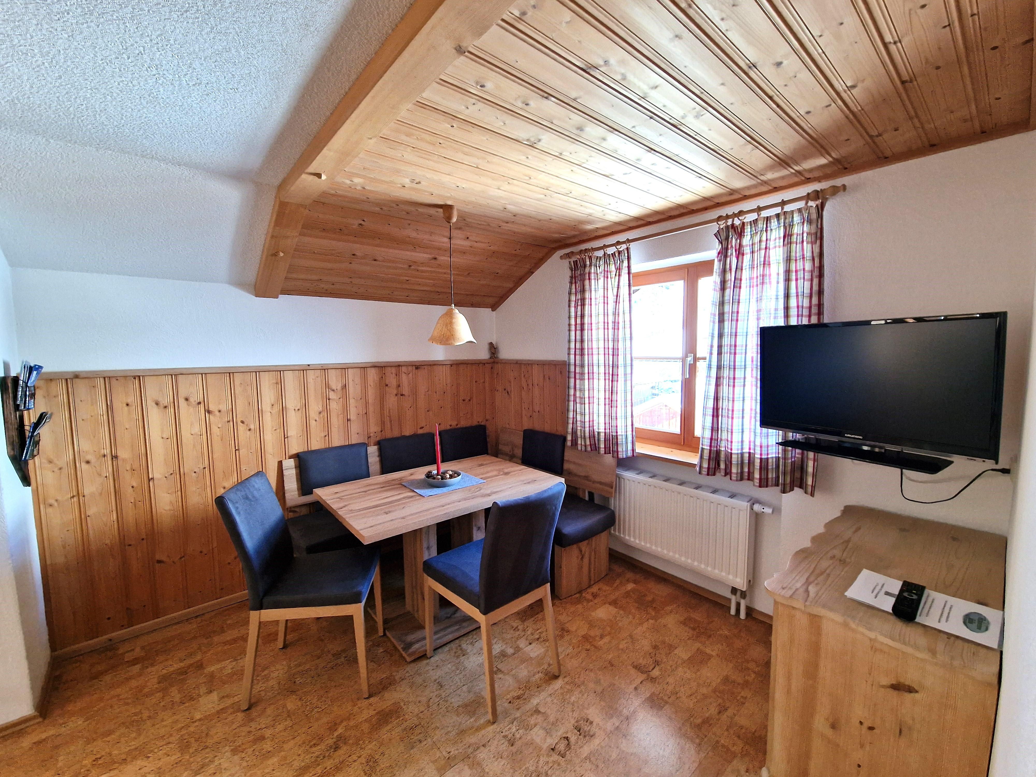 Geräumige Ferienwohnung, separater Schlafraum, Wohnraum mit Sitzecke, sowie Essecke, separate Küche mit Spülmaschine, Südbalkon mit Bergblick, Flur mit Garderorbe, DAB-Radio und Sat-TV, Getrennte Schlafmöglichkeit vorhanden. Tageslicht-Badezimmer mit Dusche/WC.