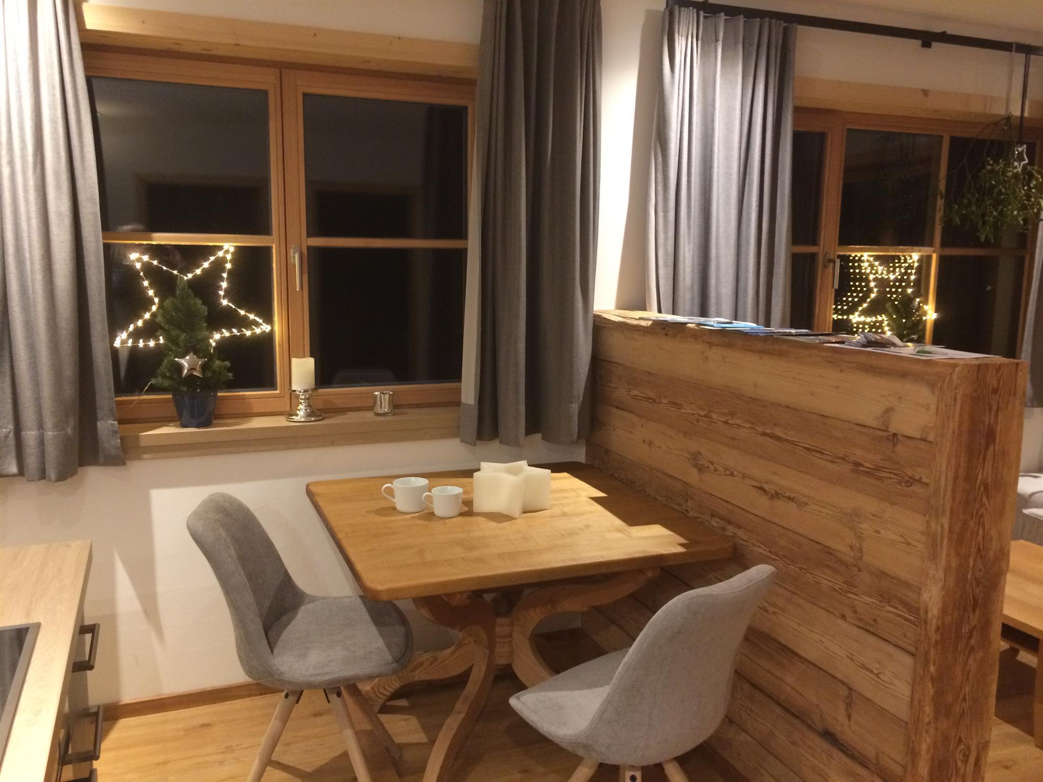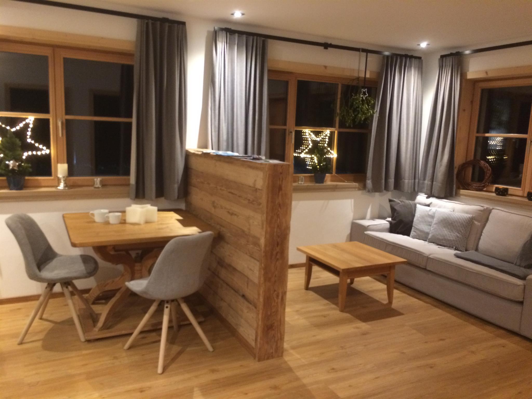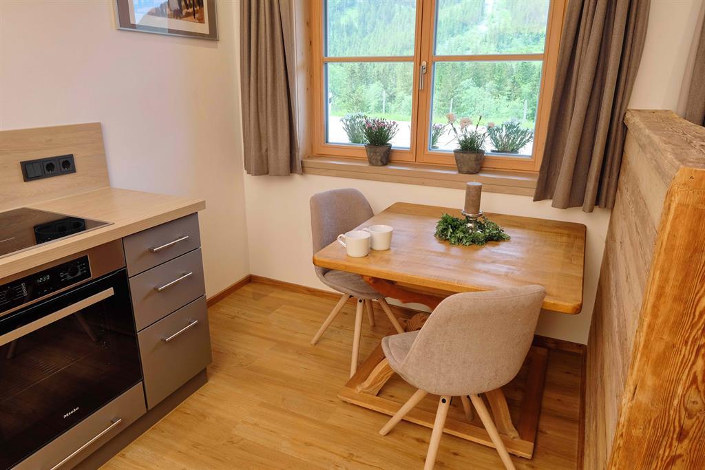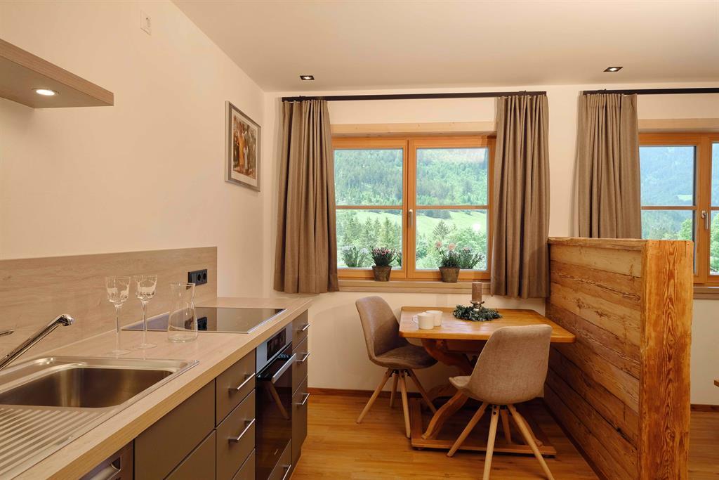 Die kleine und feine Wohnung überzeugt mit Holz und Liebe zum Detail.Die Küche ist neu und mit allem was man benötigt ausgestattet. Eine Geschirrspülmaschine,Herd mit Zerankochfeld, Backofen und ein Kaffeevollautomat + Milchschäumer.Das Schlafzimmmer ist vom Wohnraum mit integrierter Küche getrennt.Das Bad ist mit Handtücher, Föhn, Kosmetikspiegel, Dusche und WC ausgestattet. Als kl. Highlight duschen Sie mit Vitamin-C angereichertem Hintersteiner Quellwasser.TV und WLAN sind selbstverständlich.