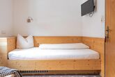 Einzelzimmer in der 1. Etage mit Dusche, WC, Kosmetikspiegel, Föhn, Shampoo sowie Safe, Schreibtisch und Kabel-TV. Zimmer mit Balkon und schöner Aussicht - ca. 12 m² groß.