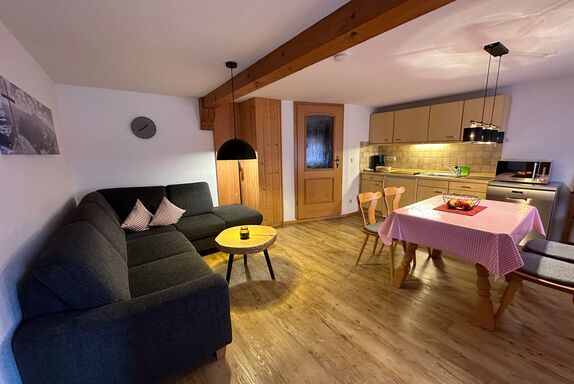 Unsere Ferienwohnung für 2-4 Personen verfügt über zwei separate Schlafzimmer, Küchenzeile mit Essecke im Wohnraum, Dusche/WC, Kabel-TV, sowie Bettwäsche und Handtücher sind vorhanden. Kostenloses WLan.