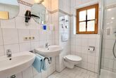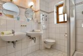 Bad mit Dusche / WC und Doppelwaschbecken, separates WC, inklusive Handtücher und Bettwäsche.
