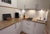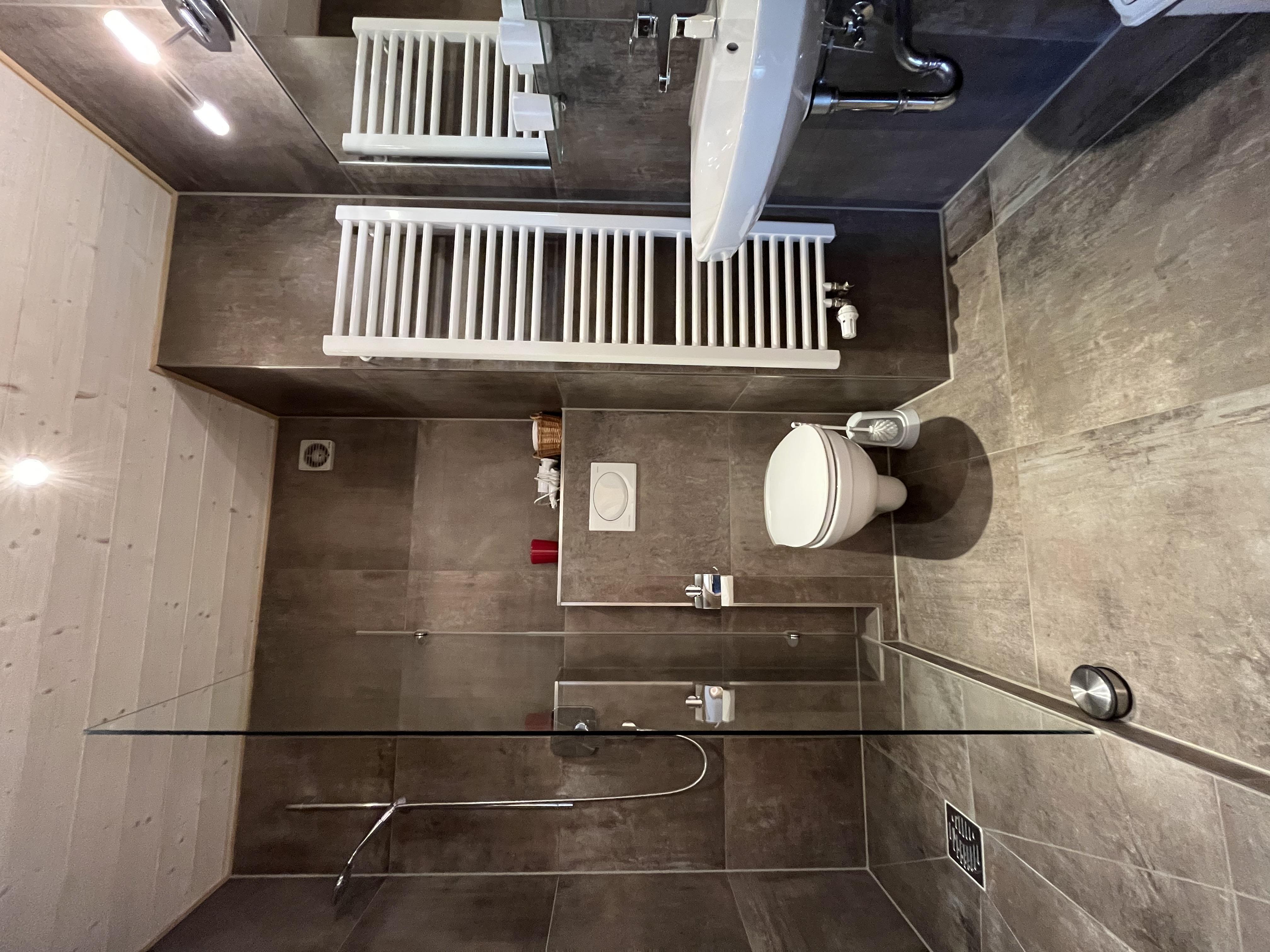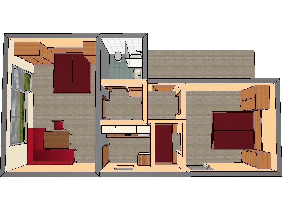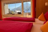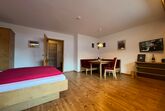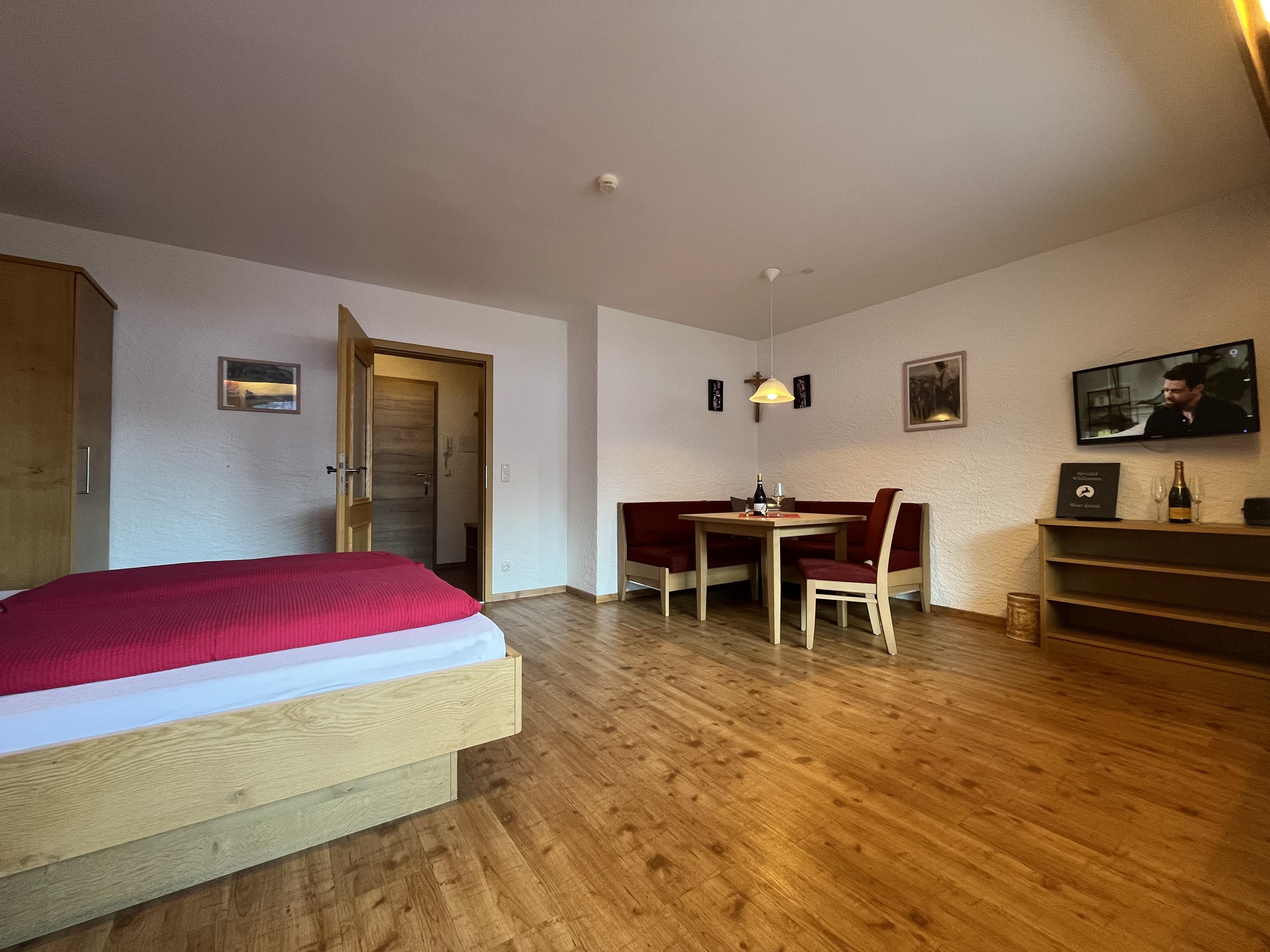 Alles neu renoviert ! Geeignet für 2-3 Personen (3 Person in Zustellbett). Lage: Südseitig, Hausmitte m.grossem überdachtem Balkon, grosses Wohn-/Schlafzimmer mit Doppelbett, Eckbank mit Tisch, komplette Küche mit Dunstabzug, Spülmasch. und Kühlschrank mit Gefriermöglichkeit, Bad-Dusche u. WC. Radio und Flachbildschirm-Sat-TV. Kinderbett auf Anfrage. Gesamt ca. 37 qm.