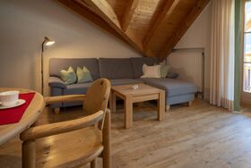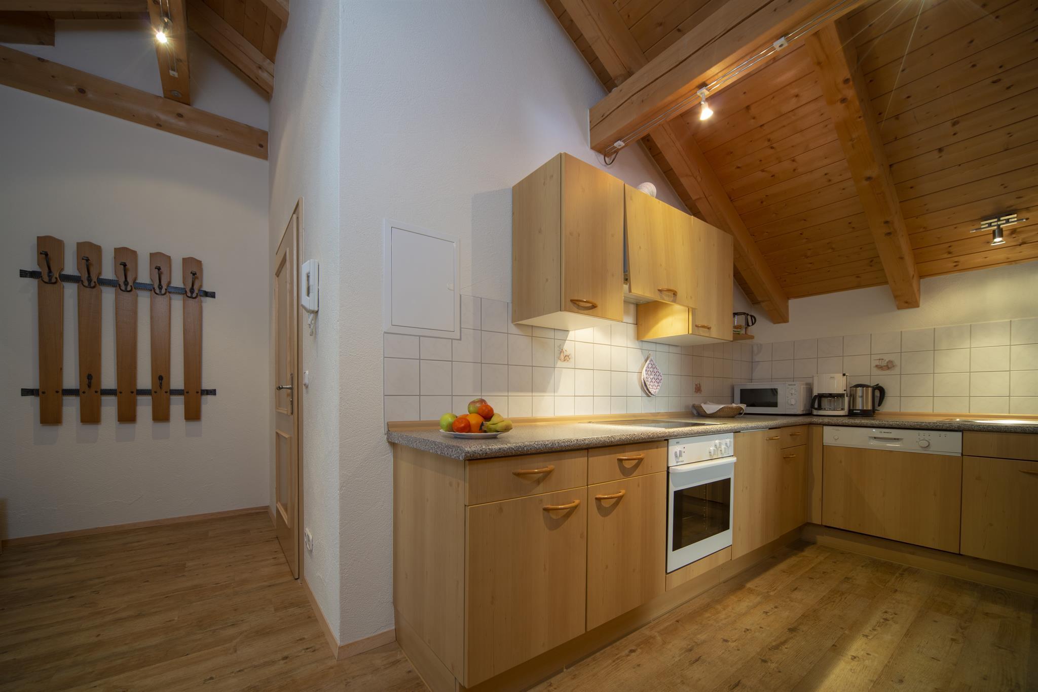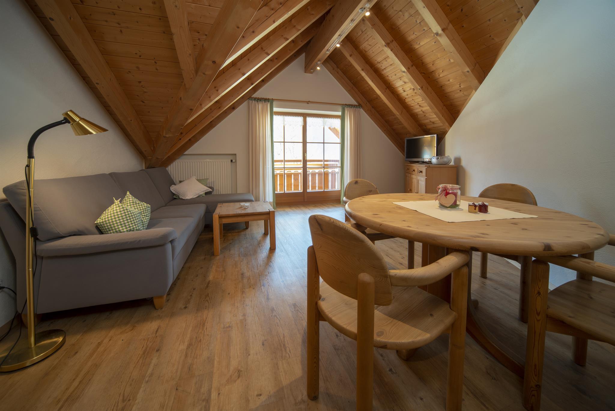 Große komfortable Ferienwohnung mit Sichtdachstuhl,Ostbalkon mit herrlichem Blick in die Berge. Gemütlicher Wohnraum mit Couchgarnitur,runder Esstisch,Flachbildschirm, Radio/CD Player und WLAN.Seperate Top ausgestattete Küche mit reichlich Ess.-und Kochgeschirr,Cerankochfeld,Backofen,Spülmaschine,Kühlschrank,Mikrowelle,Kaffeemaschine,Wasserkocher und Toaster.2 seperate Schlafzimmer. Bad mit Fenster, Dusche/WC und Waschbecken. Bettwäsche,Dusch.-Hand.-und Küchentücher sind reichlich vorhanden.