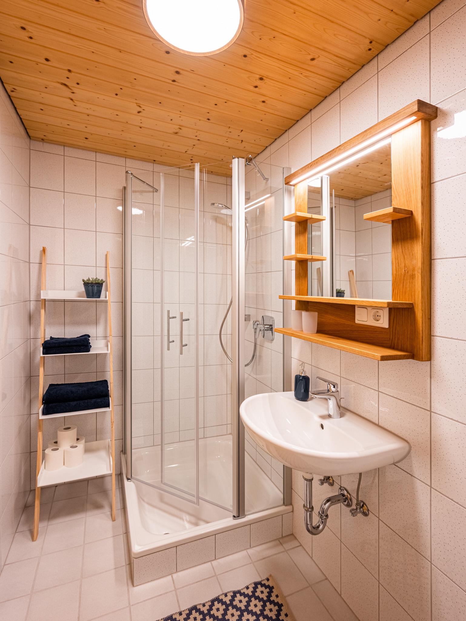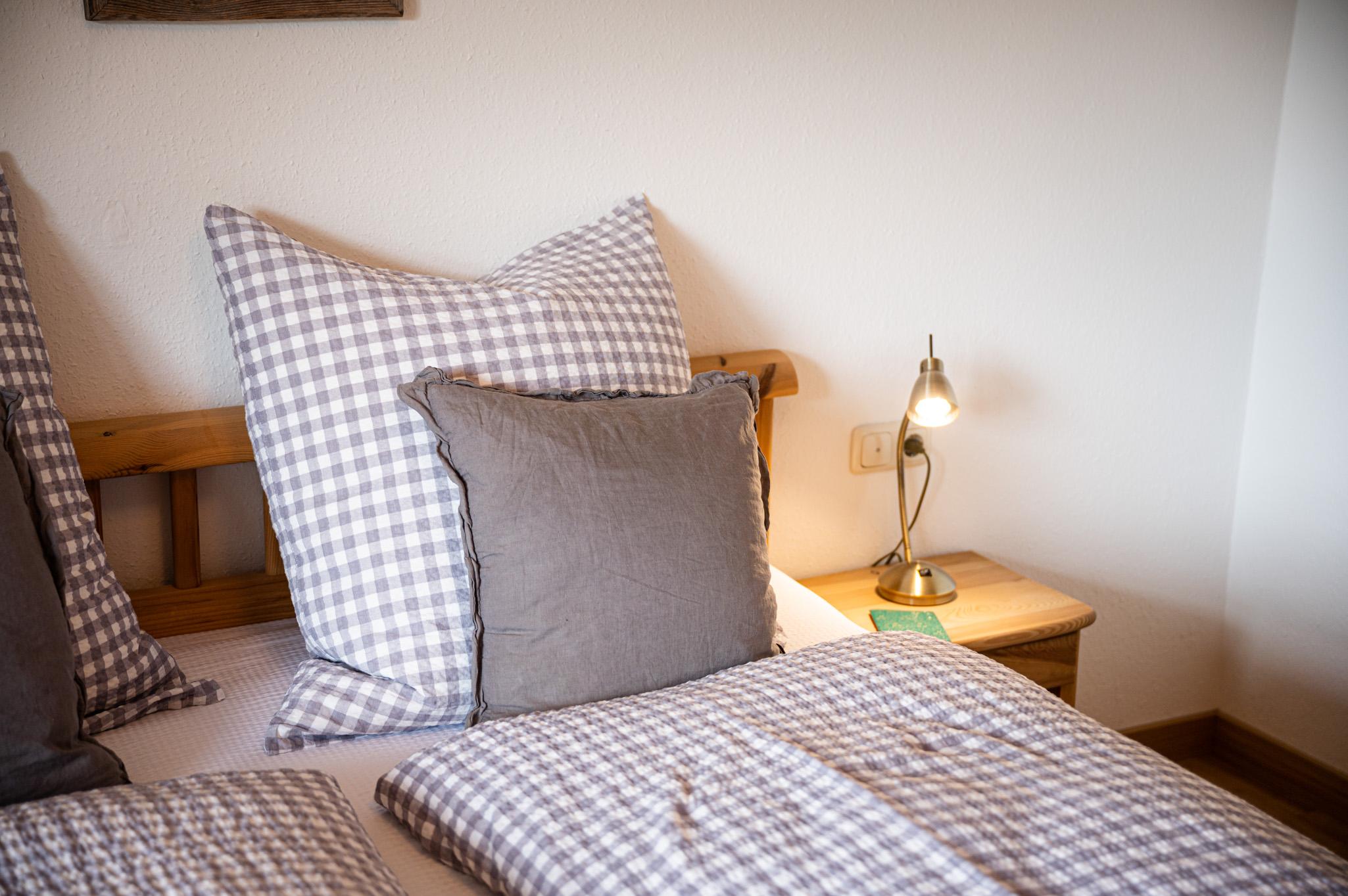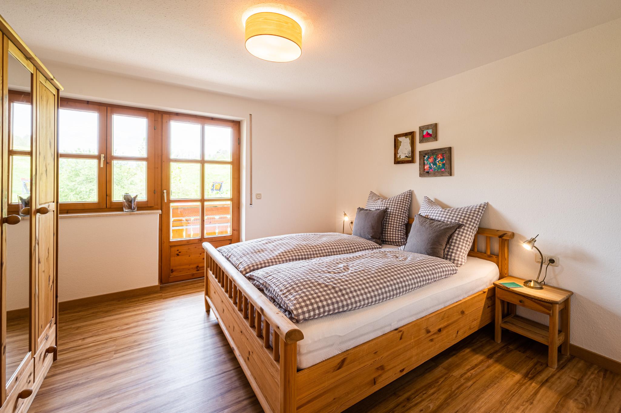 Ach ja, zu Fuß sind es ins Dorf drei Minuten und auf den Hirschberg 90 Minuten.