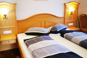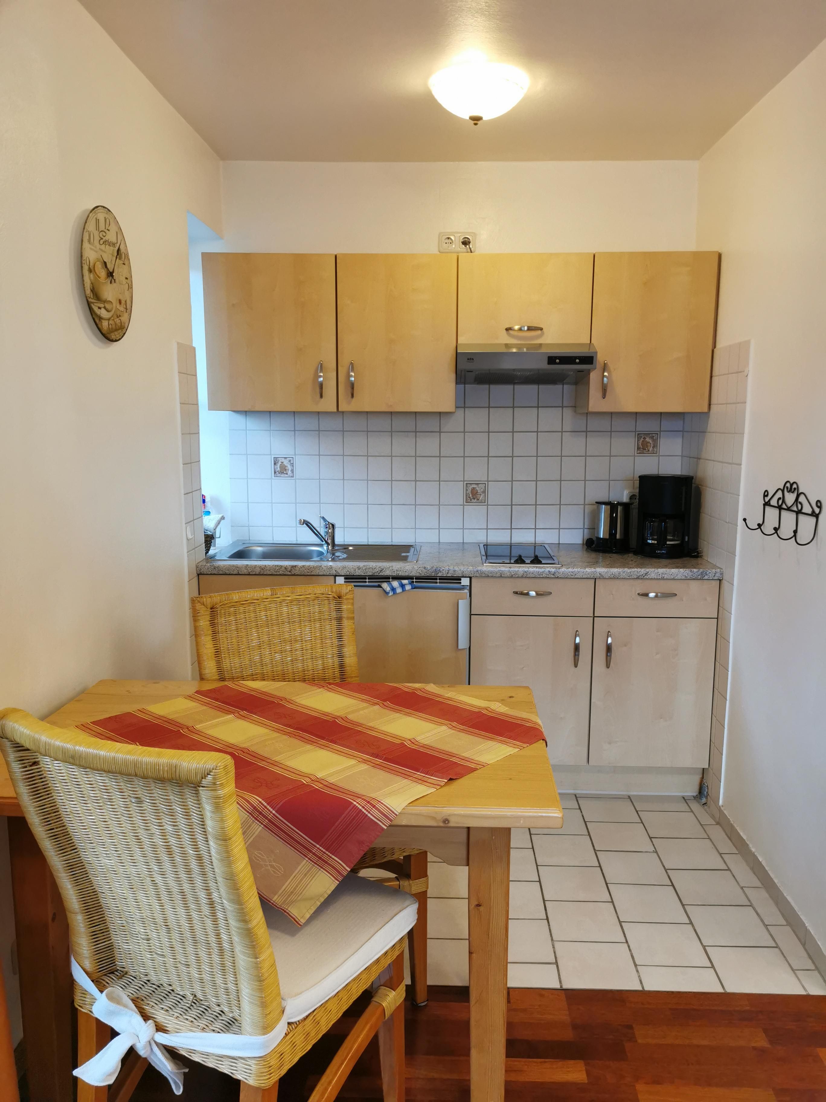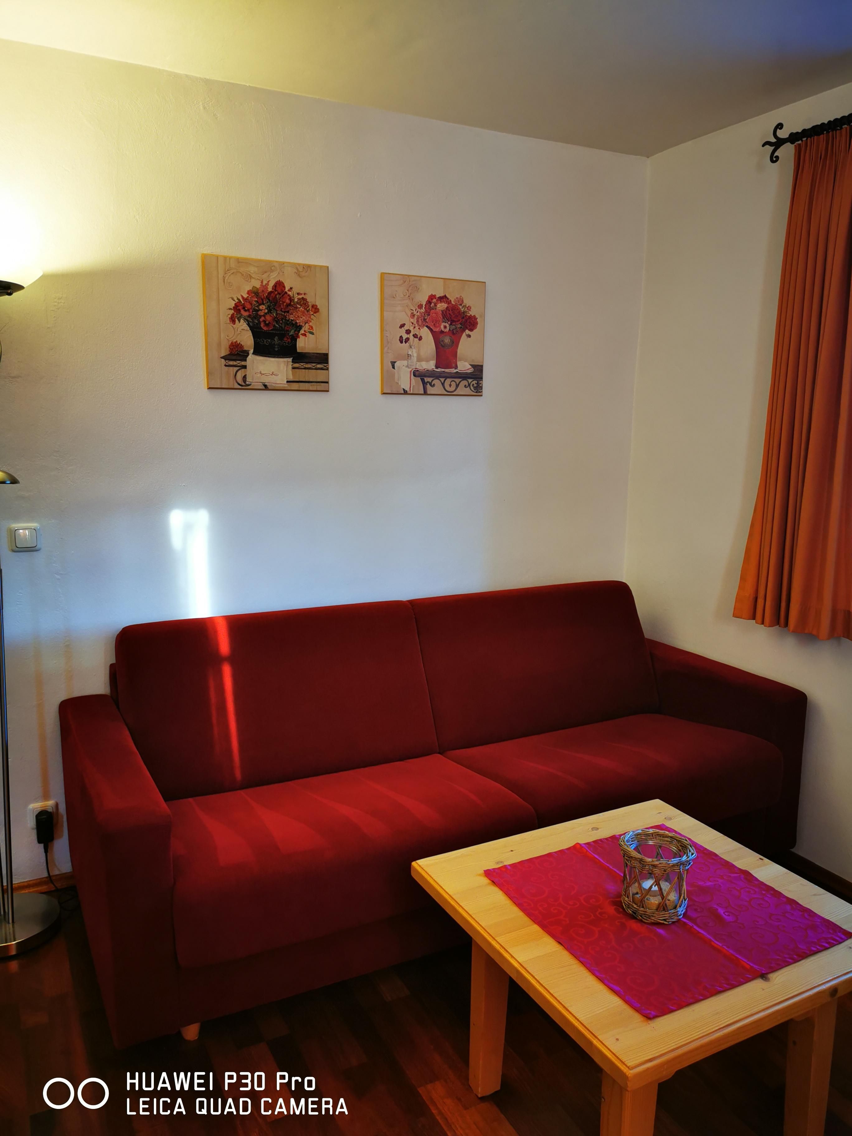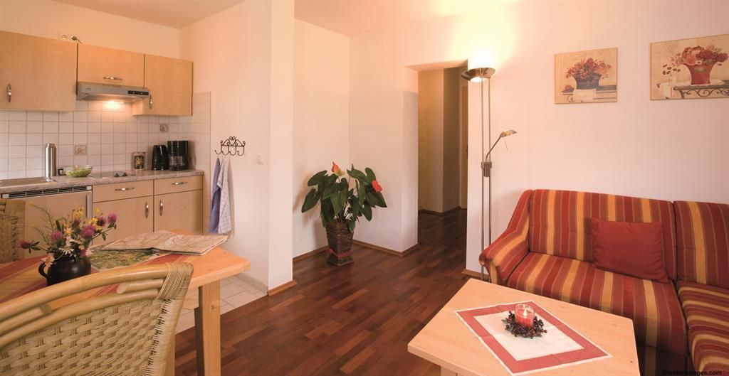 2 Raum Komfort-Wohnung mit Parkett, ca.35 qm im 1.Stock Ost-Balkon mit Bergblick. Kleine Diele mit Garderobe, Wohnraum mit gemütlicher Polstergarnitur und Essplatz im alpenländischen Flair. SAT-TV Flachbildschirm und CD-Radio Stereoanlage. Küche komplett eingerichtet mit Mikrowelle, Kaffeemaschine, Senseo Kaffeepadmaschine, Toaster, Eierkocher und Wasserkocher. Separates Schlafzimmer, Bad mit Dusche+WC.