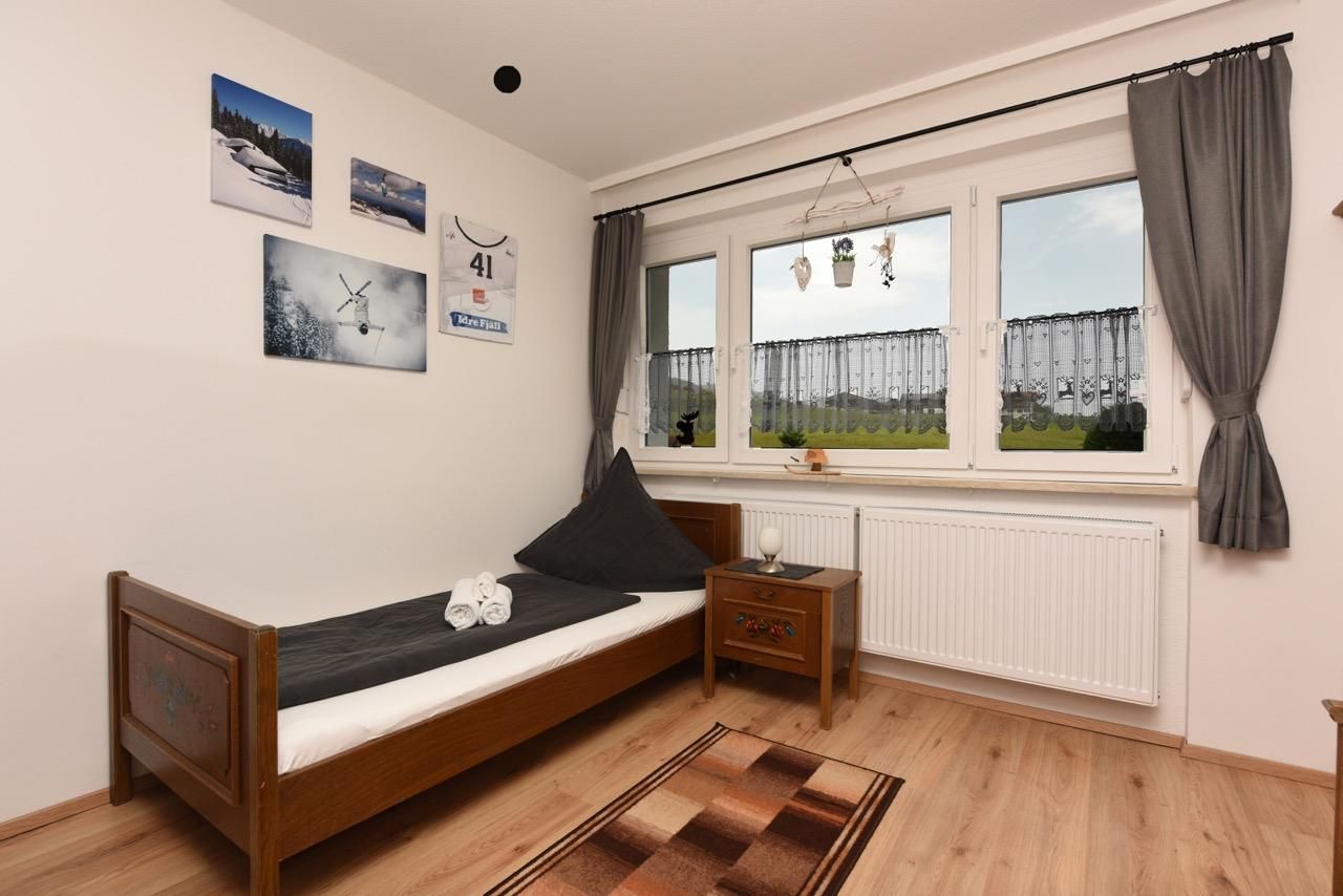 Unser neu eingerichtetes ruhig gelegenes Ferienhaus (Reihenmittelhaus) verfügt über 2 Schlafzimmer und ein Badezimmer (Badewanne mit integrierter Dusche/WC) im OG, 1 gr.Wohn-Esszimmer, Küche mit Spülmaschine und Sitzgelegenheit für 2 Pers., zusätzliches WC im EG. Von allen Zimmern sowie von der Terrasse und dem Garten habe Sie einen herrlichen Bergblick. Die SZ befinden sich im OG, in einem SZ steht ein Doppelbett, ein Tisch mit zwei Stühlen und ein Fernseher. Hier gibt es Verdunklungsvorhänge und Sie haben die Möglichkeit auf den Balkon zu sitzen (ebenfalls ausgetattet mit Tisch und 2 Stühlen). Im zweiten Schlafzimmer steht ein Doppelbett und ein Einzelbett (hier gibt es keine Verdunklungsvorhänge). Beide Doppelbetten sind mit elektrisch verstellbaren Lattenrosten ausgestattet. In beiden SZ befindet sich genug Platz um ein Zustellbett oder ein Kinderbett aufzustellen.