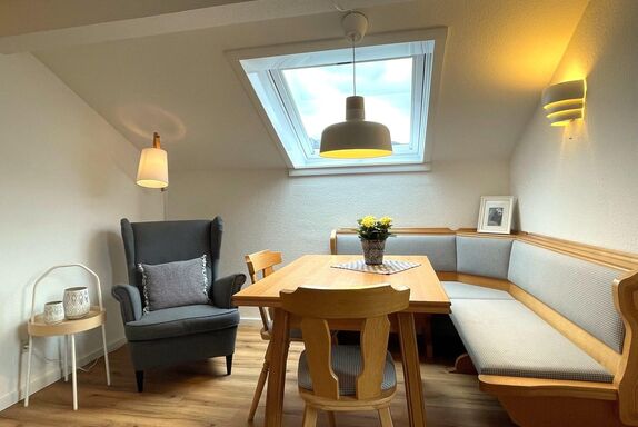 Klein und fein lädt dich unsere frisch renovierte Kleine Ferienwohnung zu einem erholsamen Aufenthalt ein. Unsere Große bietet viel Platz und eine sonnige Terrasse. Auf dem überdachtem Balkon der kleinen Ferienwohnung lässt es sich bei jedem Wetter gemütlich sitzen. In den gut ausgestatteten Küchen kann man sich bei Bedarf gut selbst versorgen.