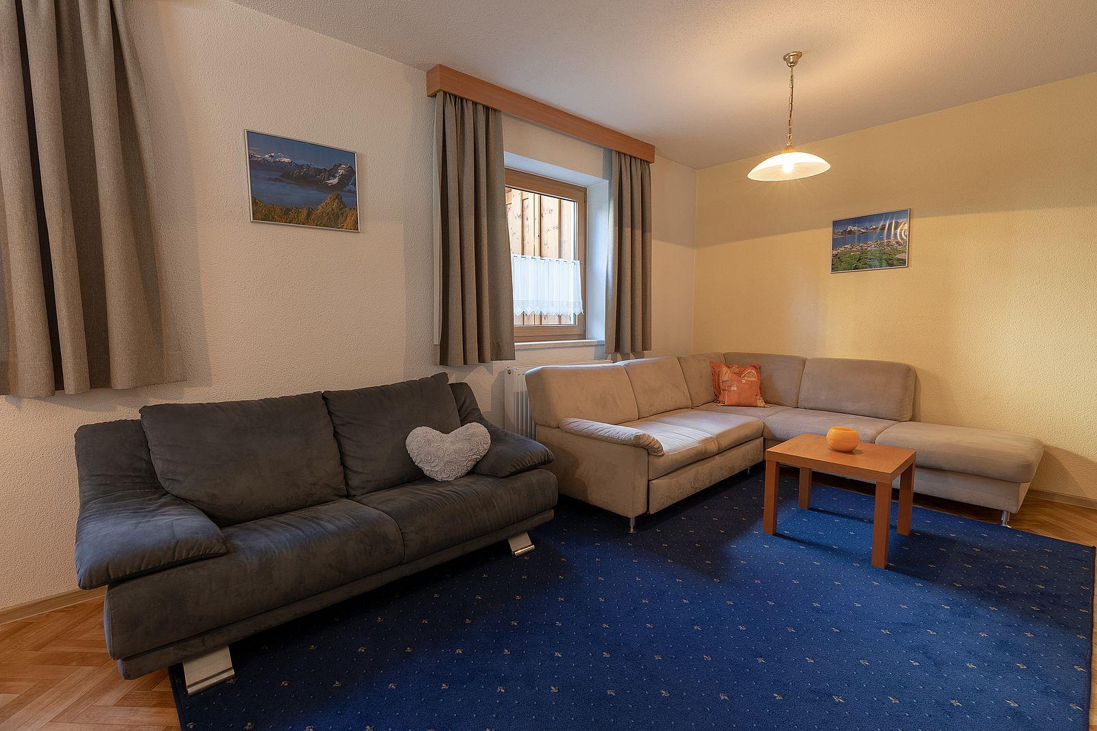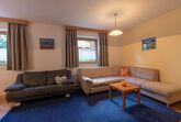 Geräumiges Appartement mit ca. 125 m² Wohnfläche, überdachtem Parkplatz und seperatem, eigenen Eingang, bestehend aus: Wohnraum mit Einbauküche, Kabel-TV, seperates WC, Schuhtrockner, großer Vorraum mit genügend Platz für Ihr Sportequipment im Erdgeschoss und 1 Badezimmer mit Badewanne, Dusche und WC, 2 Dreibettzimmer, 1 Doppelzimmer, 1 Badezimmer mit DU/WC, ein zusätzliches WC, Kabel-TV und Balkon im Obergeschoss.