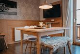 Die Wohnung im 1. Obergeschoss mit 45 m² verfügt über einen Wohnraum mit einer komplett ausgestatteten Küche, einem Esstisch, einer Sitzecke, Sat-TV, ein Schlafzimmer, Balkon und ein Bad mit Dusche und Toilette.