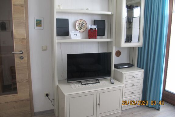 Die Ferienwohnung (Jacobs 2) verfügt über jeglichen Komfort wie eine komplett eingerichtete Küche und einen Flachbildfernseher im Wohnzimmer. Außerdem zeichnet sich die Wohnung durch die 2 großen Balkone (Südbalkon am Wohnzimmer und Westbalkon am Schlafzimmer) aus.