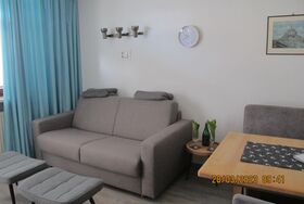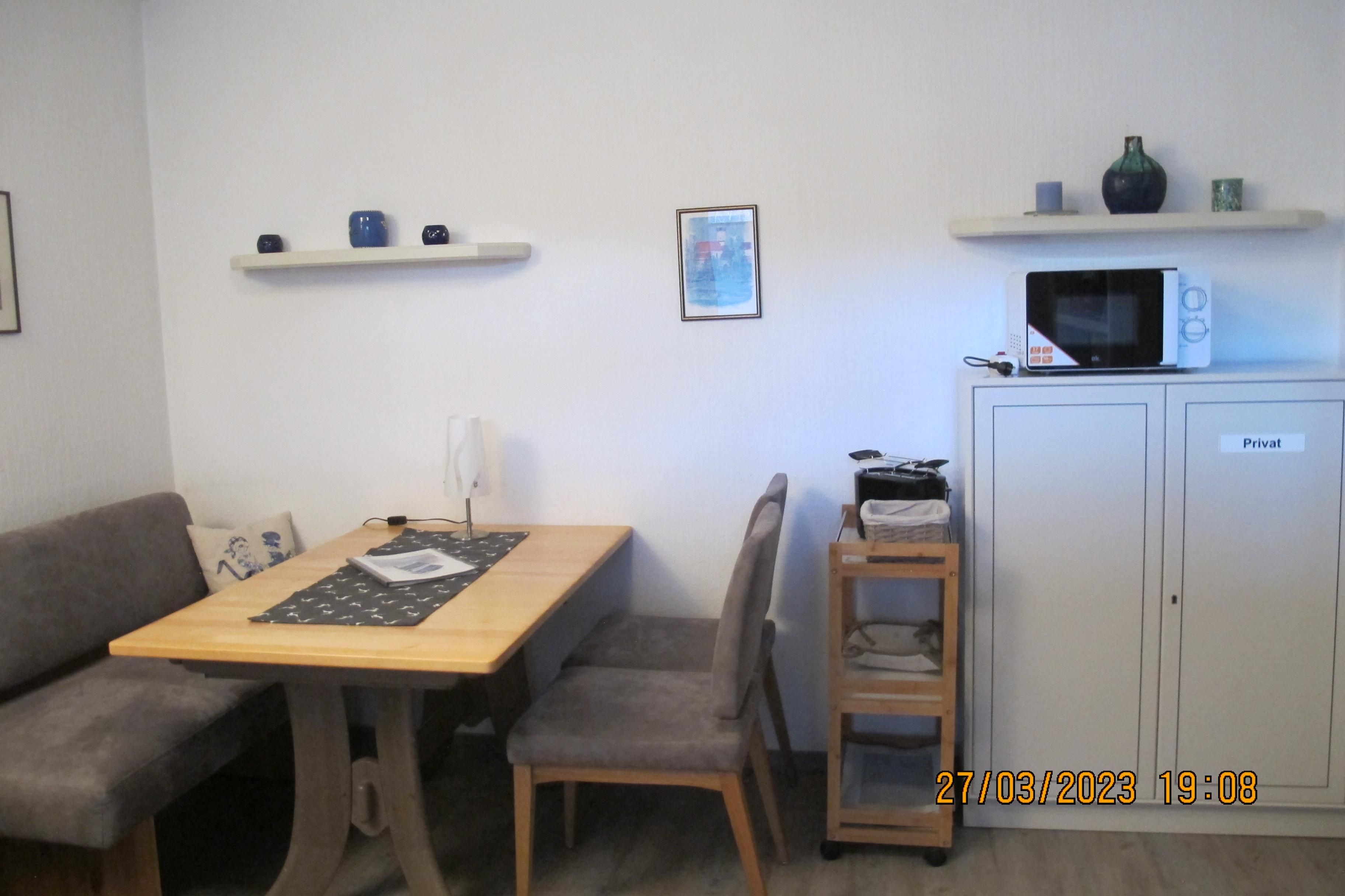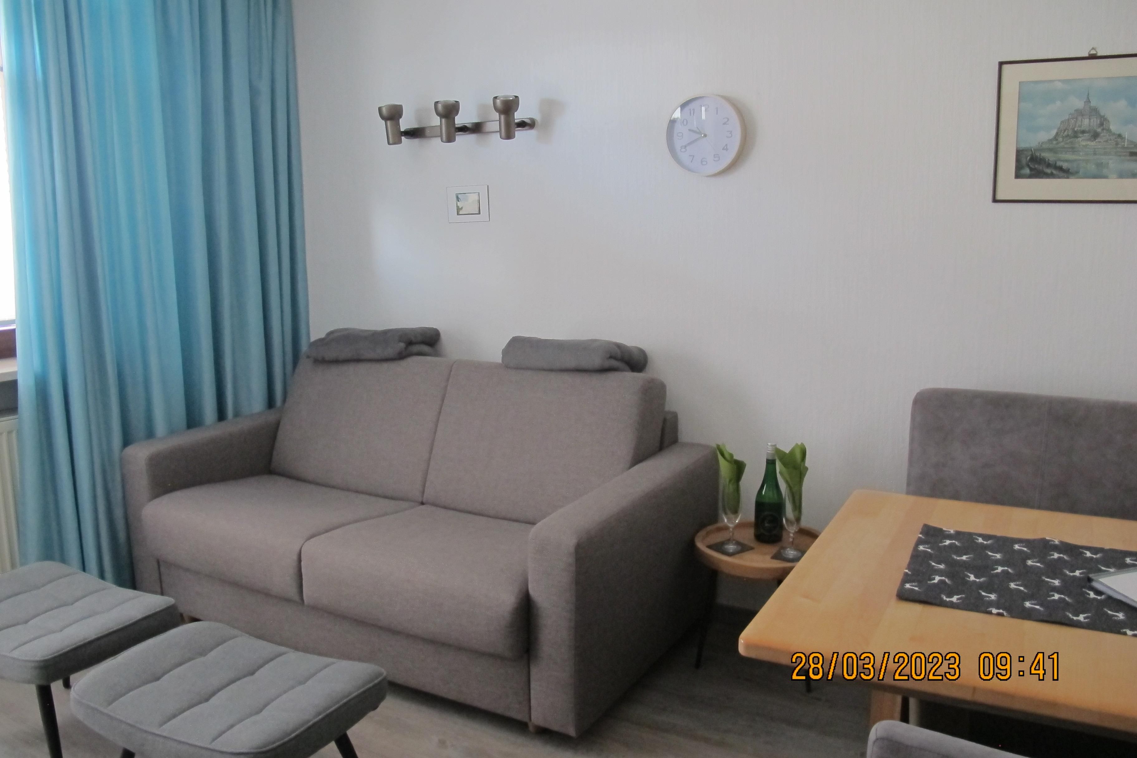 Das Wohn/Eßzimmer wurde aktuell durch ein neues,gemütliches Sitz/Schlafsofa sowie neuen Möbeln für die Eßecke verschönert.