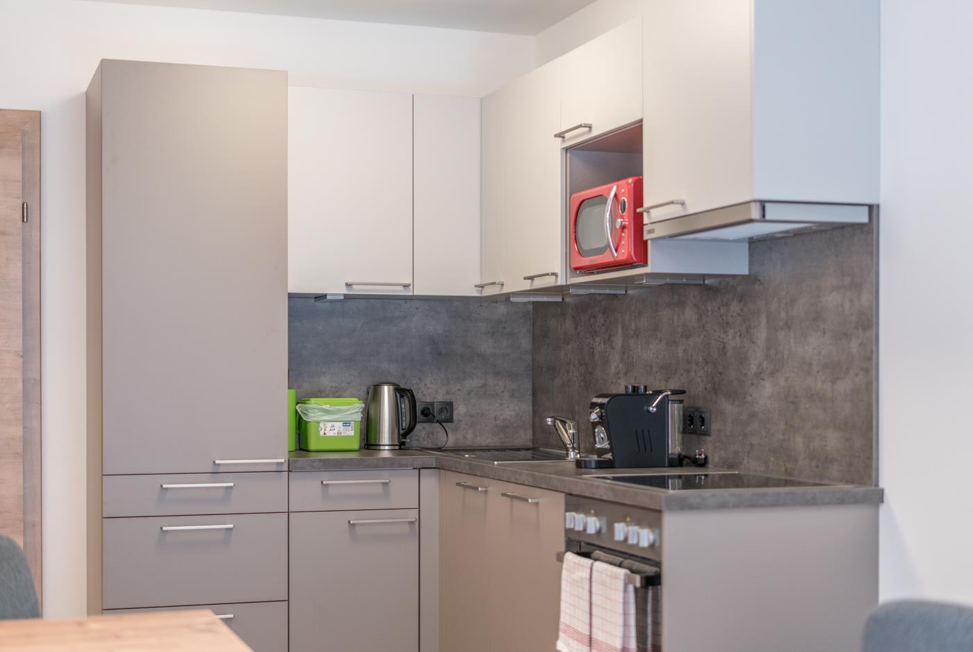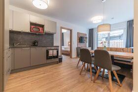 Gemütliches Wohnzimmer (zusätzliche Schlafmöglichkeit Schlafcouch 160x200 cm) mit Essbereich, HD-Flachbildfernseher, Safe, W-Lan sowie Küche mit Geschirrspüler, Backrohr, Ceranfeld, Dunstabzug, Kühl-Gefrierschrank, Espressomaschine