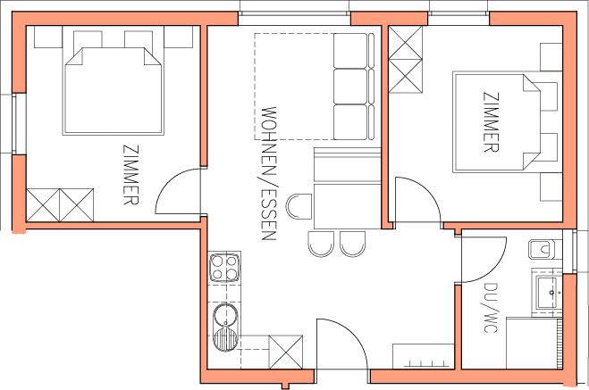 Ihr Appartement befindet sich im Erdgeschoss und verfügt über eine Terrasse