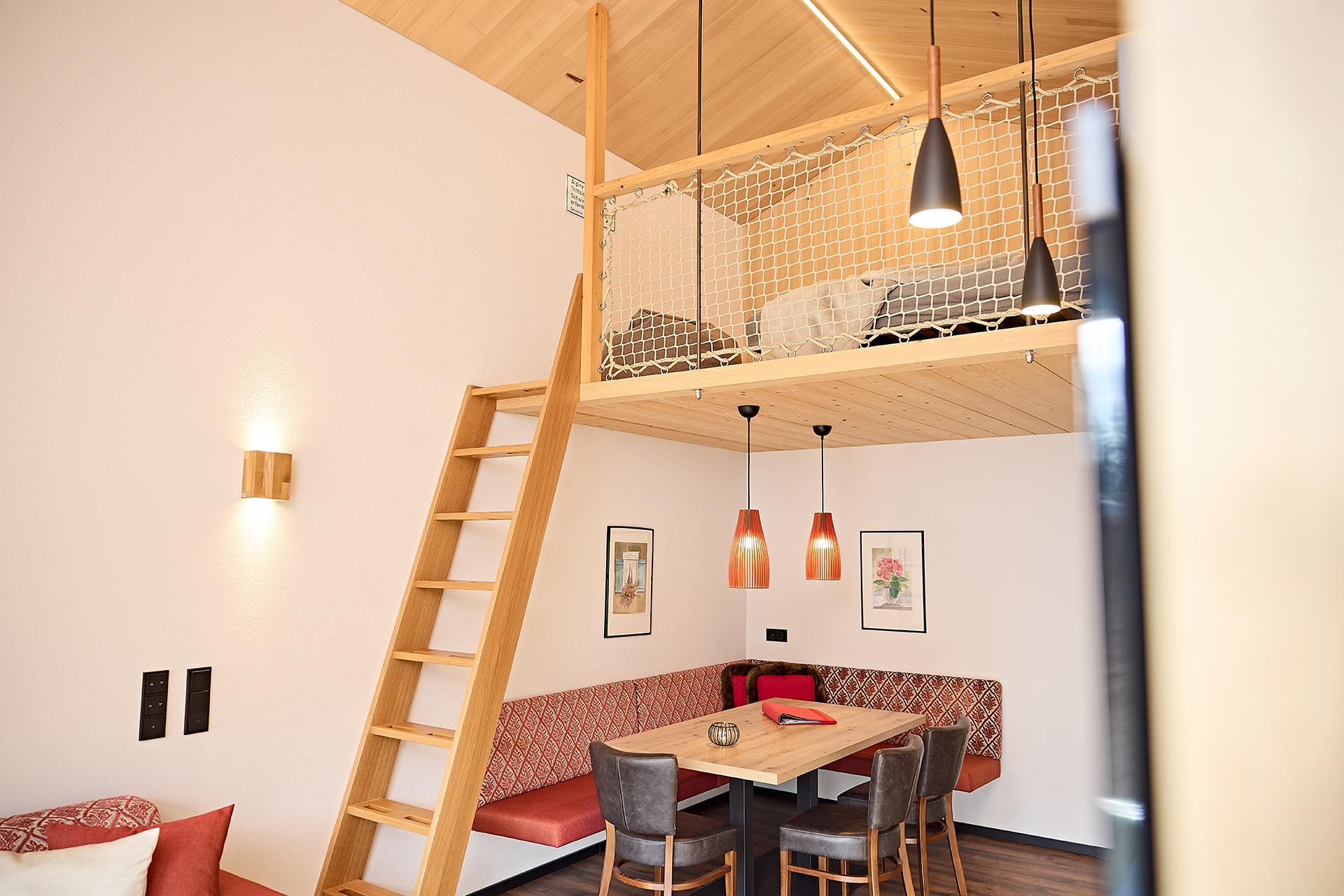 • Wohngalerie im offenen Dachstuhl mit zusätzlicher Schlafcouch 140x200