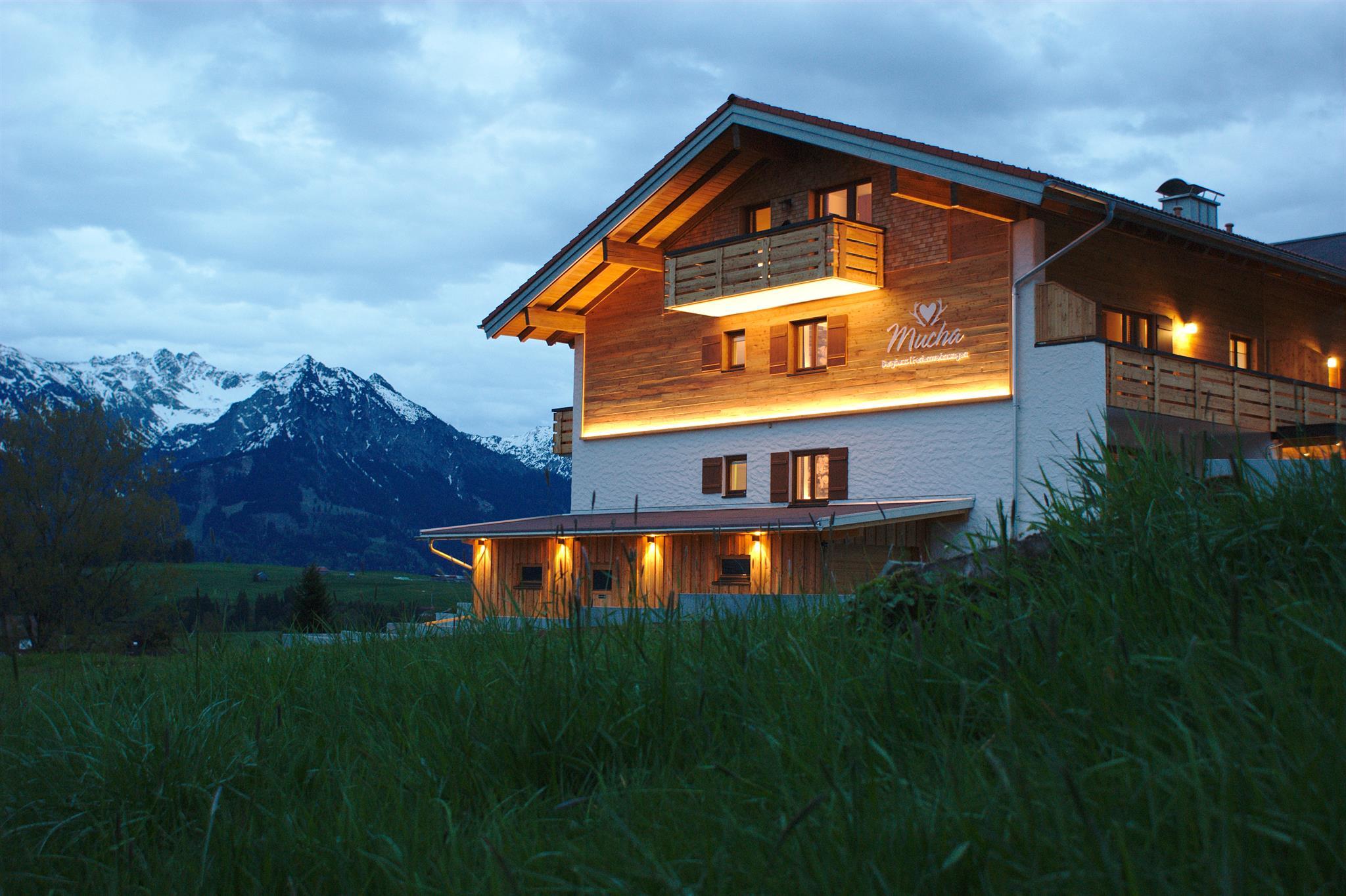 Unser Berghaus Mucha in Bolsterlang mit seinen 10 neuen und modernen Traum-Ferienwohnungen liegt in einer der exponiertesten Lagen des Allgäus. Leicht erhöht über Bolsterlang mit bestem Ausblick auf die Allgäuer Berge und in absolut ruhiger Lage, können Sie die perfekte Auszeit vom Alltag genießen. Alle Ferienwohnungen sind im modernen alpinen Stil, mit hochwertigen Materialien und mit viel Liebe zum Detail eingerichtet. Die Bergbahn, sowie Skilift, Loipen, Golfplätze und viele weitere Freizeitmöglichkeiten sind in wenigen Minuten erreichbar.