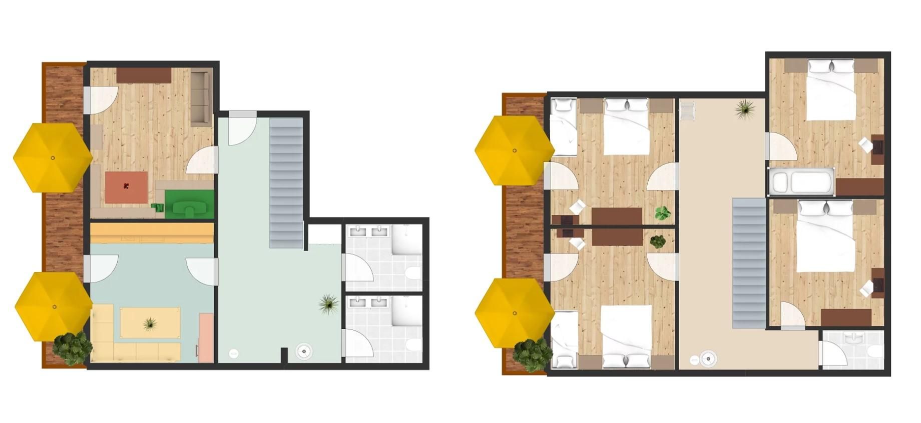 Das Appartement Acherkogelblick mit ca. 157 m² verläuft über 2 Stockwerke und bietet ausreichend Platz für bis zu 12 Personen. Die Wohnung besteht aus: 2 Dreibettzimmern mit jeweils Doppel- und Einzelbett; 1 Familienzimmer mit Doppelbett und Etagenbett; 1 Doppelzimmer; 2 Badezimmer mit Dusche und WC; 1 separates WC; 1 komplett ausgestattete Wohnküche mit großem Esstisch; typische Tiroler Zirbenstube mit Kachelofen; großer Vorraum; Balkon auf beiden Etagen