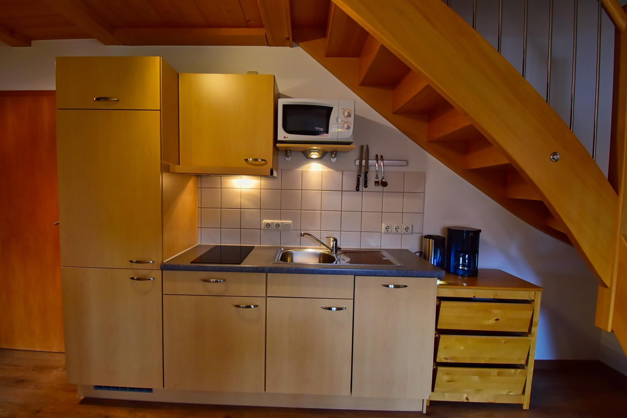 Unsere Wohnung (auf 2 Etagen) besteht aus einem Schlafzimmer, einem Bad, ein Wohnzimmer und einer Küche. Um unsere schöne Landschaft zu genießen steht Ihnen ein großzügiger Balkon mit Gartenmöbeln zur Verfügung. WLAN gratis!