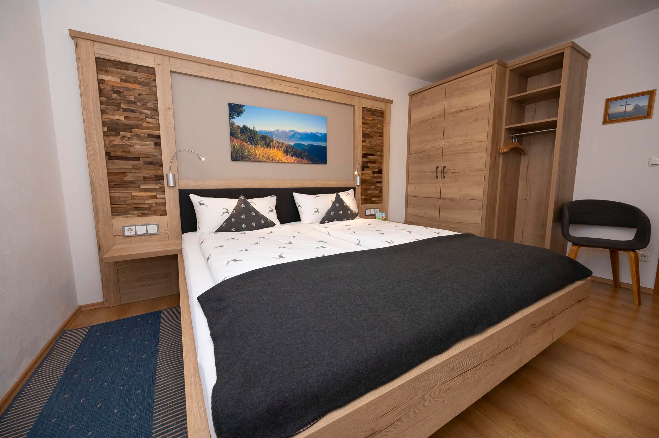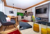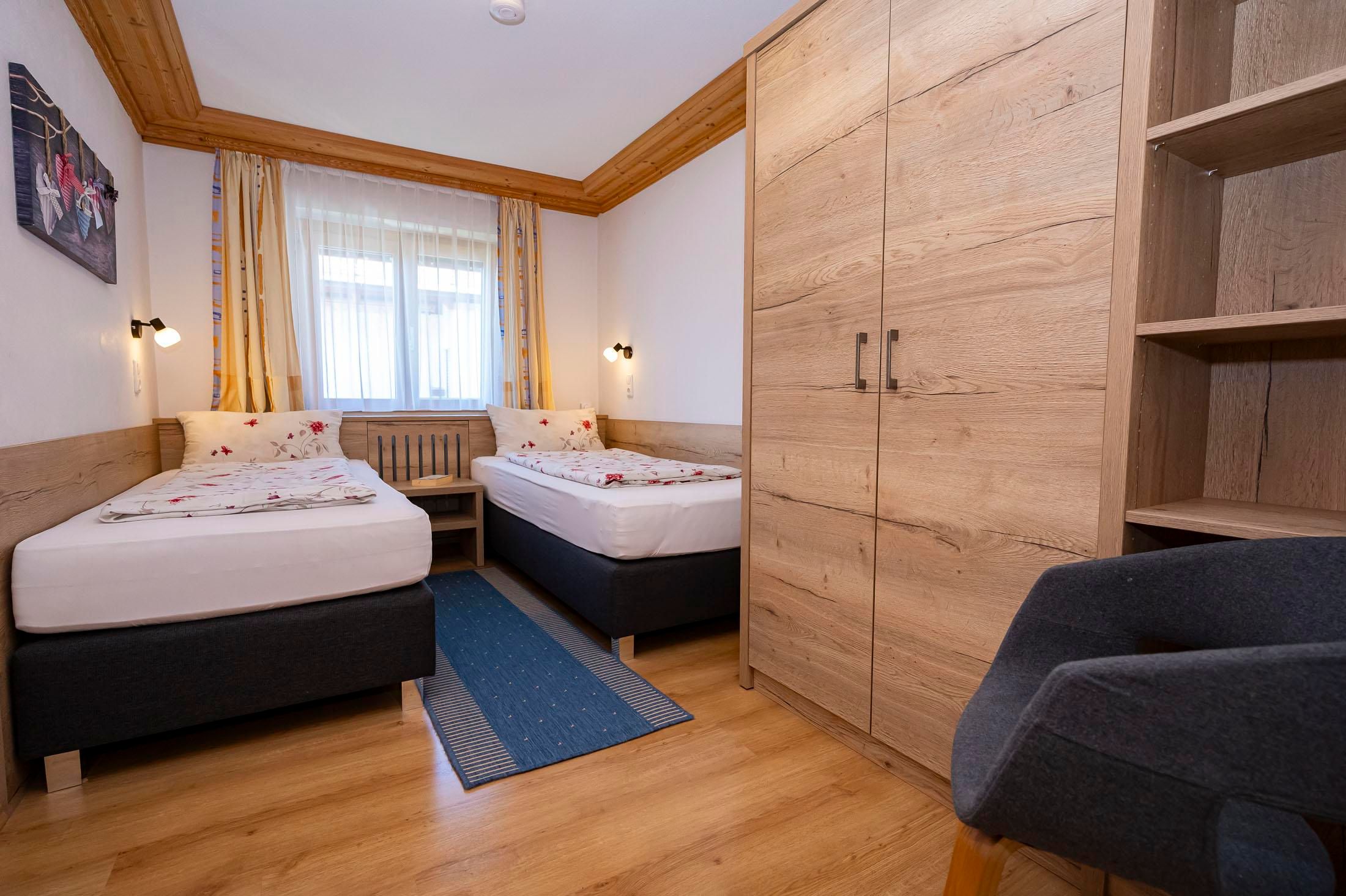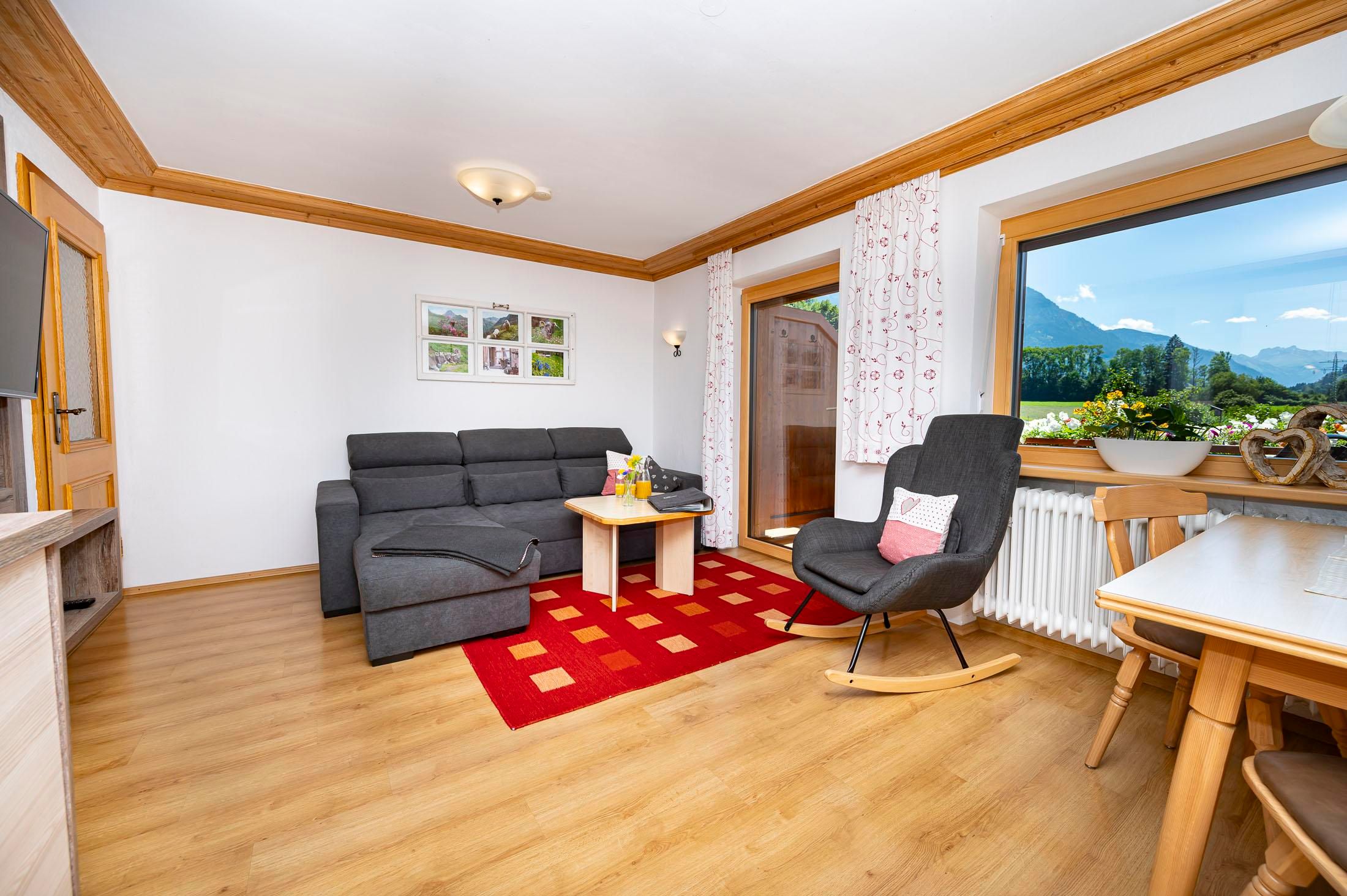gemütliche, komfortable Ferienwohnung mit zwei getrennten Schlafräumen, 1x Doppelbett, 1x 2 Einzelbetten, Südbalkon mit herrlicher Bergsicht, Wohnzimmer mit Essecke und Couchgarnitur, SAT-TV, komplette Küche mit Spülmaschine, Kühlschrank mit Gefrierfach, Backofen, Mikro, Kaffeemaschine, Toaster, Wasser- und Eierkocher, Badezimmer mit Du/WC, Handtücher, Geschirrtücher, Bettwäsche und Föhn inklusive.