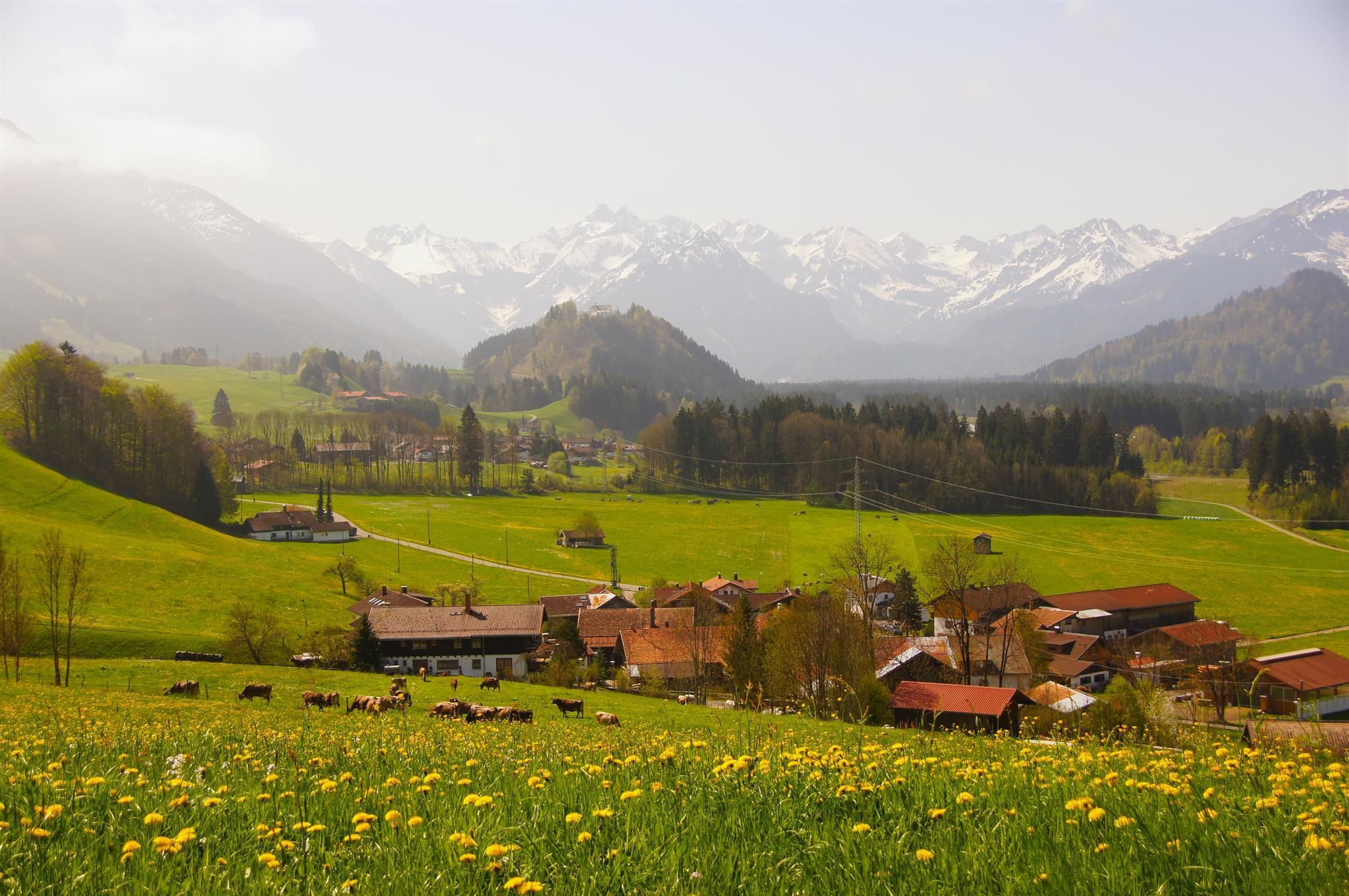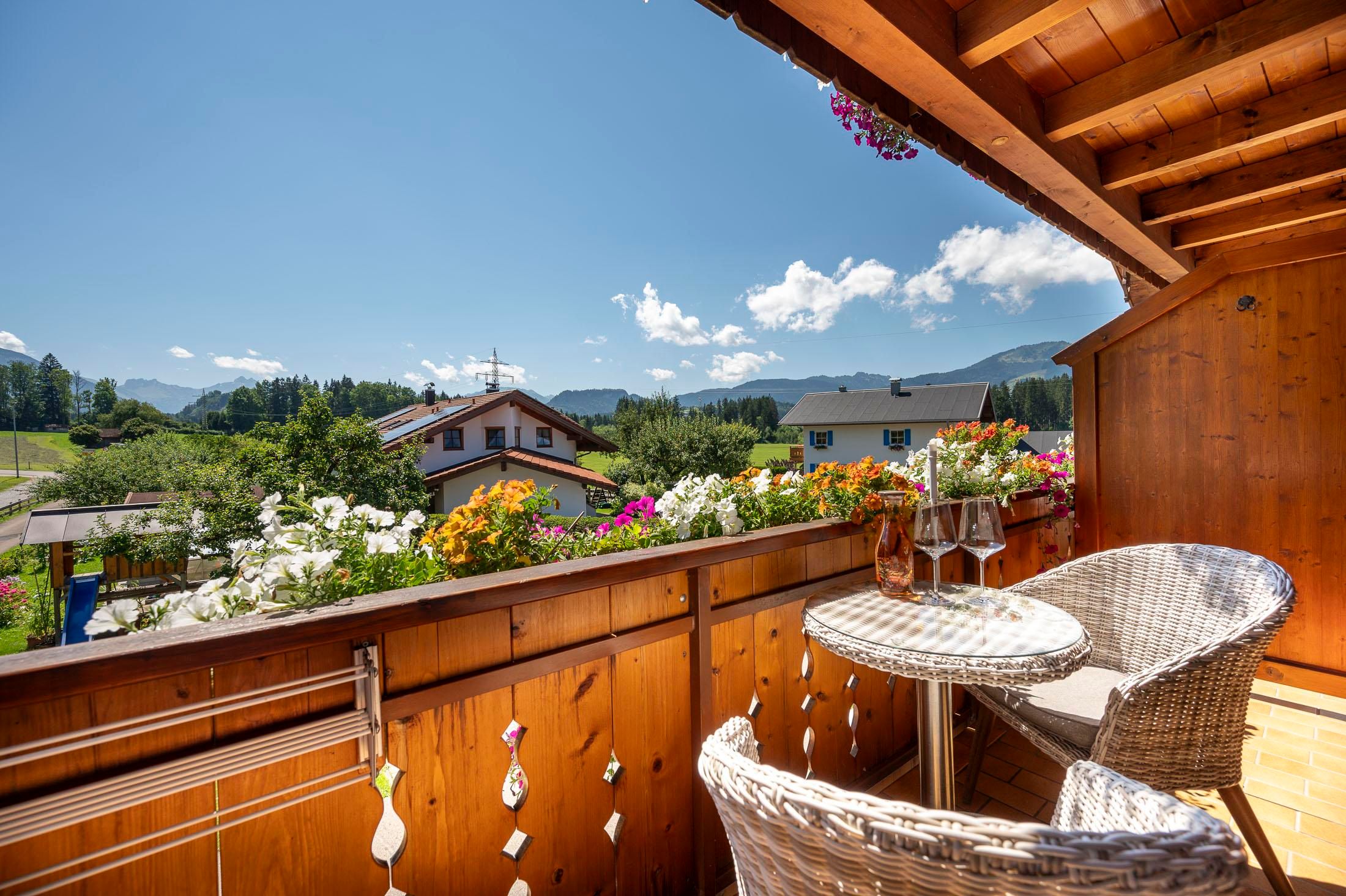 Unser Haus liegt im Fischinger Ortsteil Unterthalhofen in ruhiger, sonniger Lage mit herrlichem Blick auf die Allgäuer Berge.