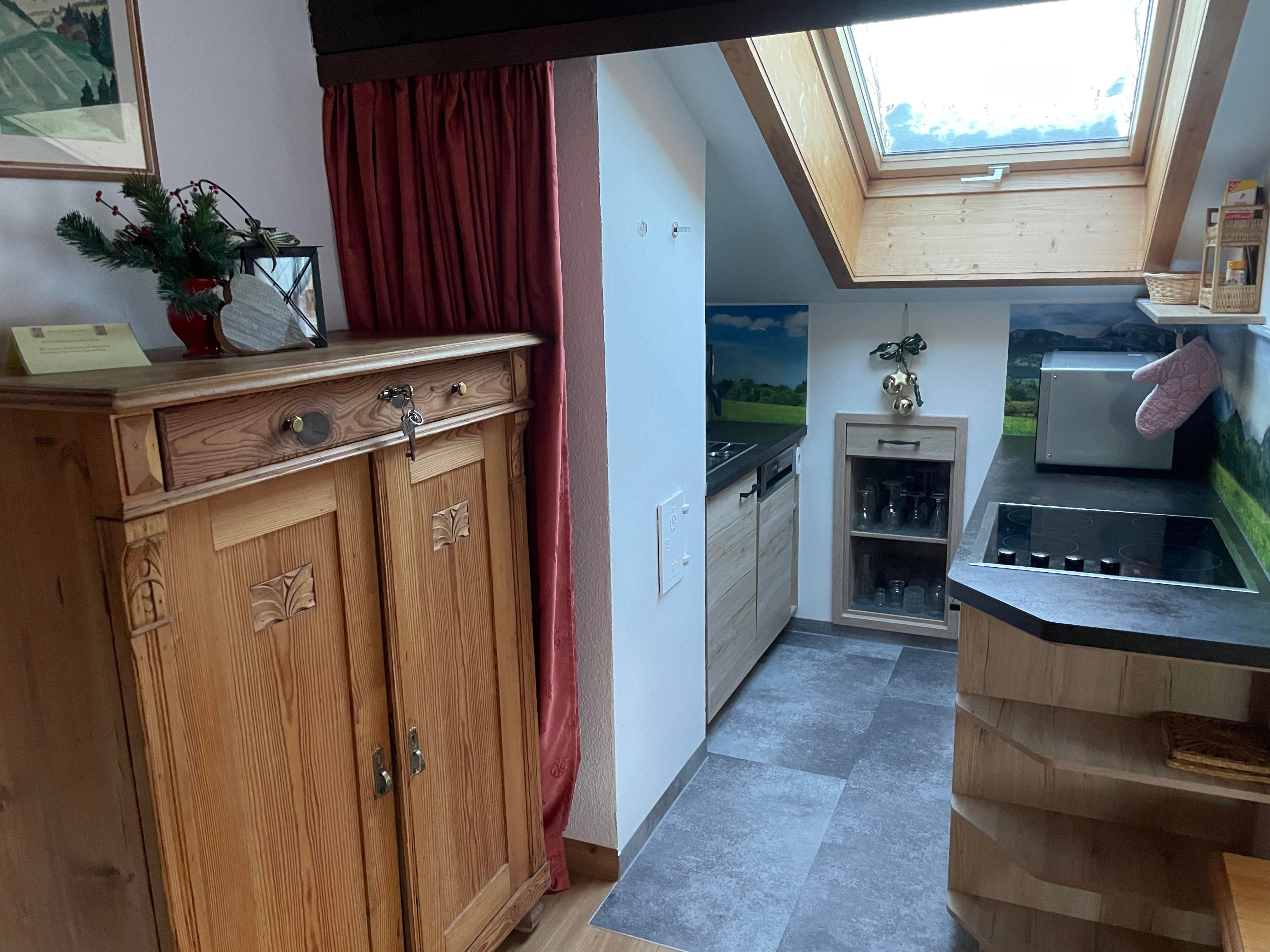 Gemütliche im Landhausstil eingerichtete Studio Ferienwohnung mit herrlichem Bergblick. Ostbalkon und Bergblick in die Oberstdorfer Berge.
