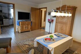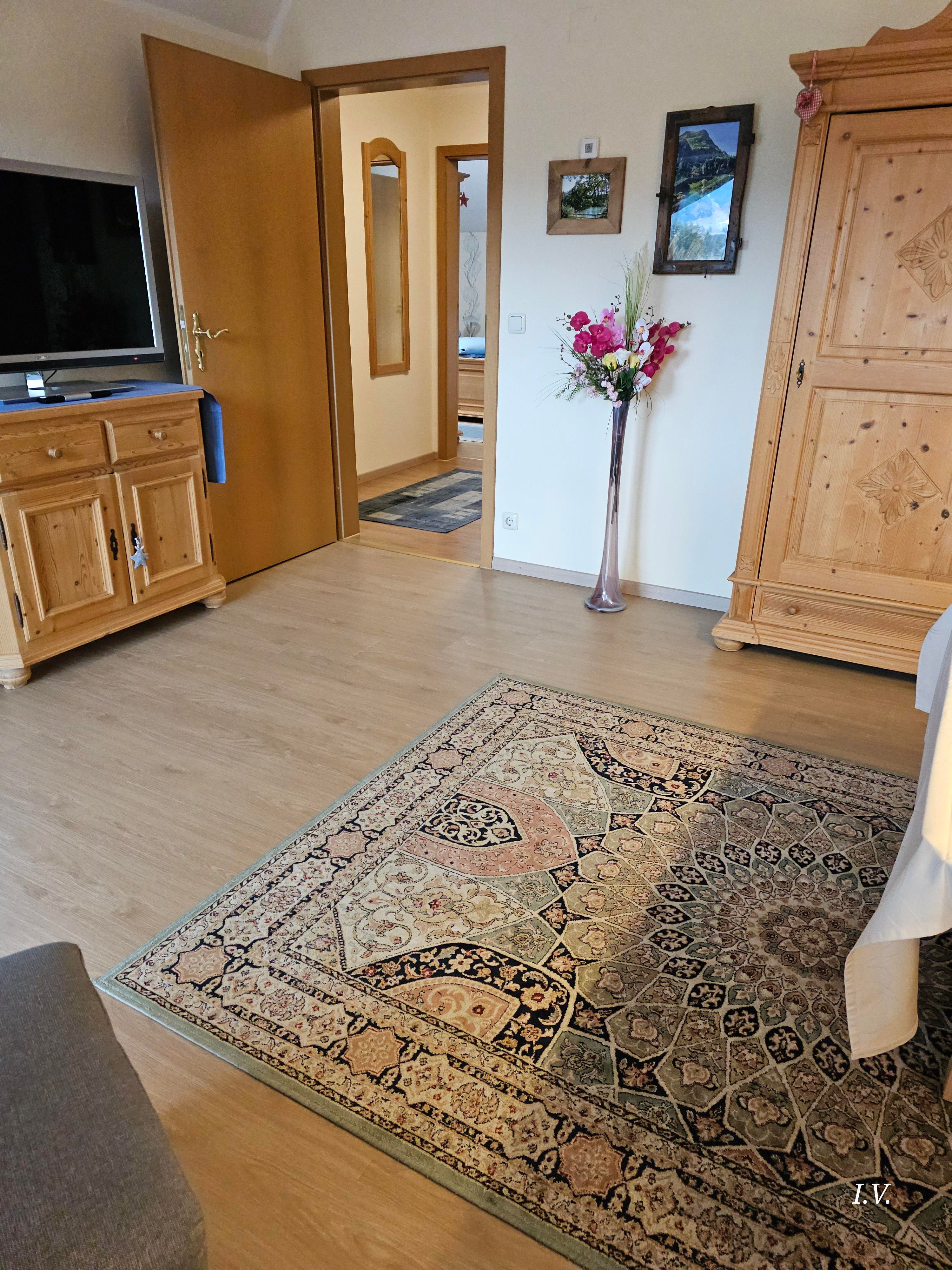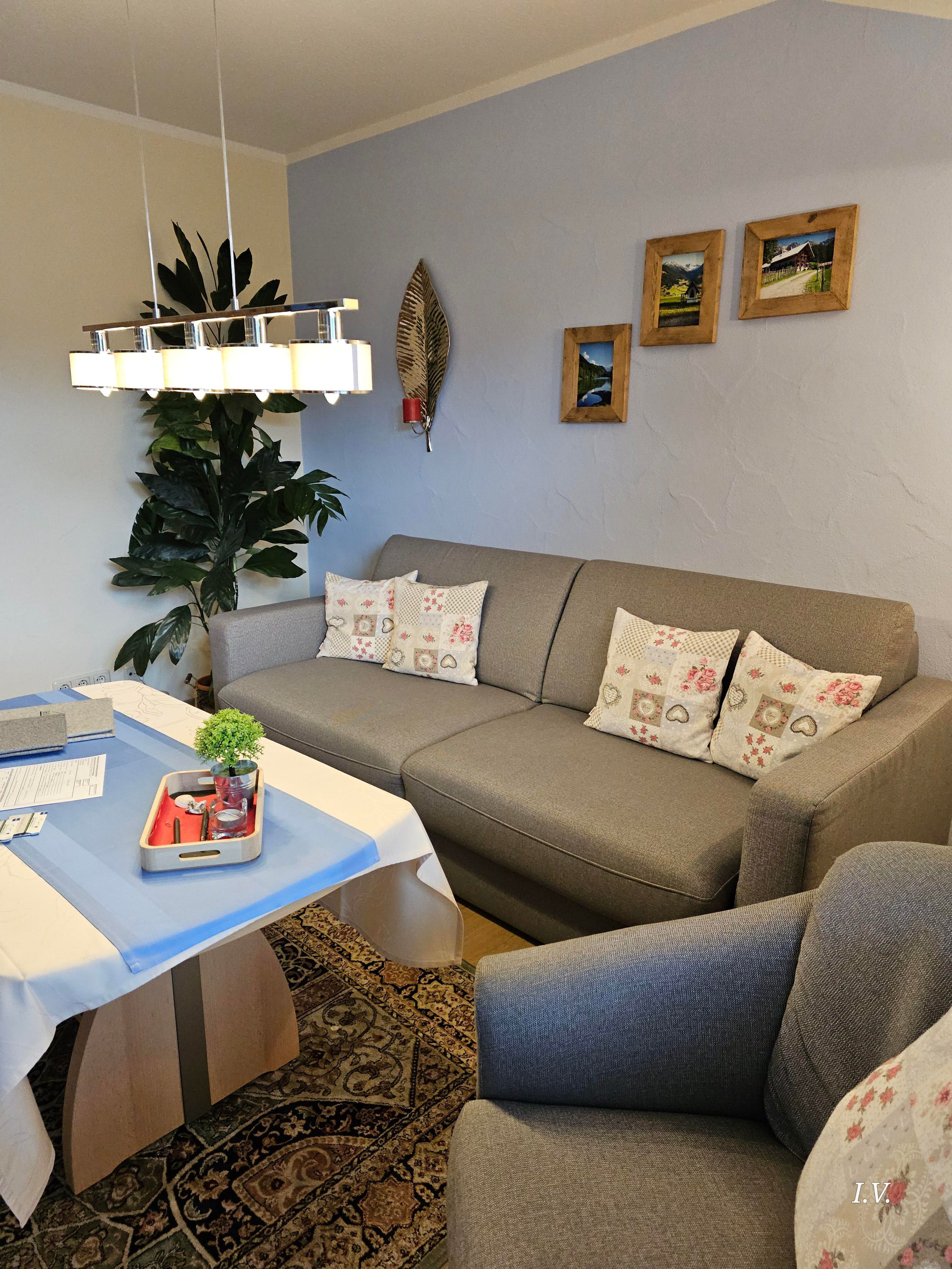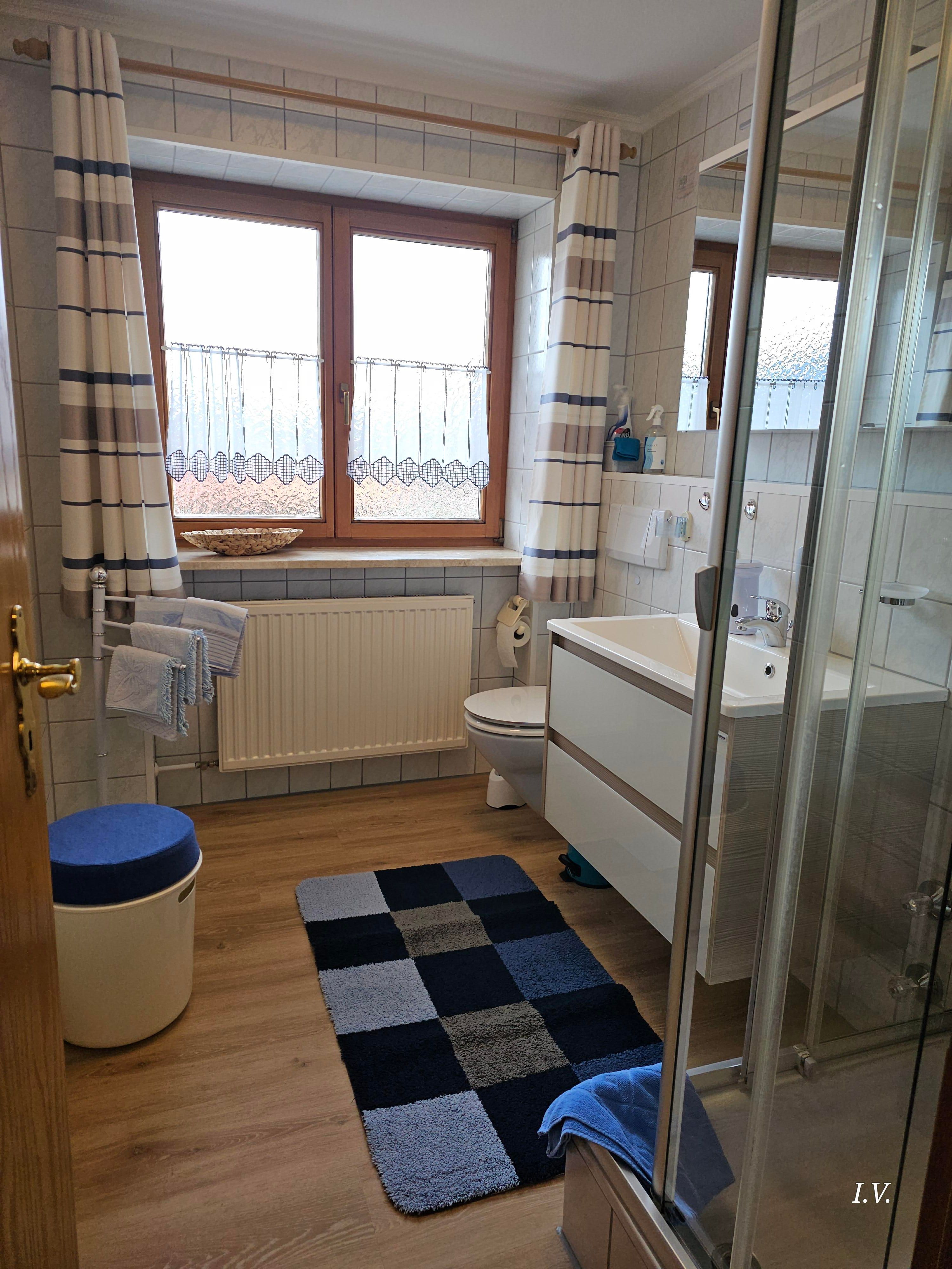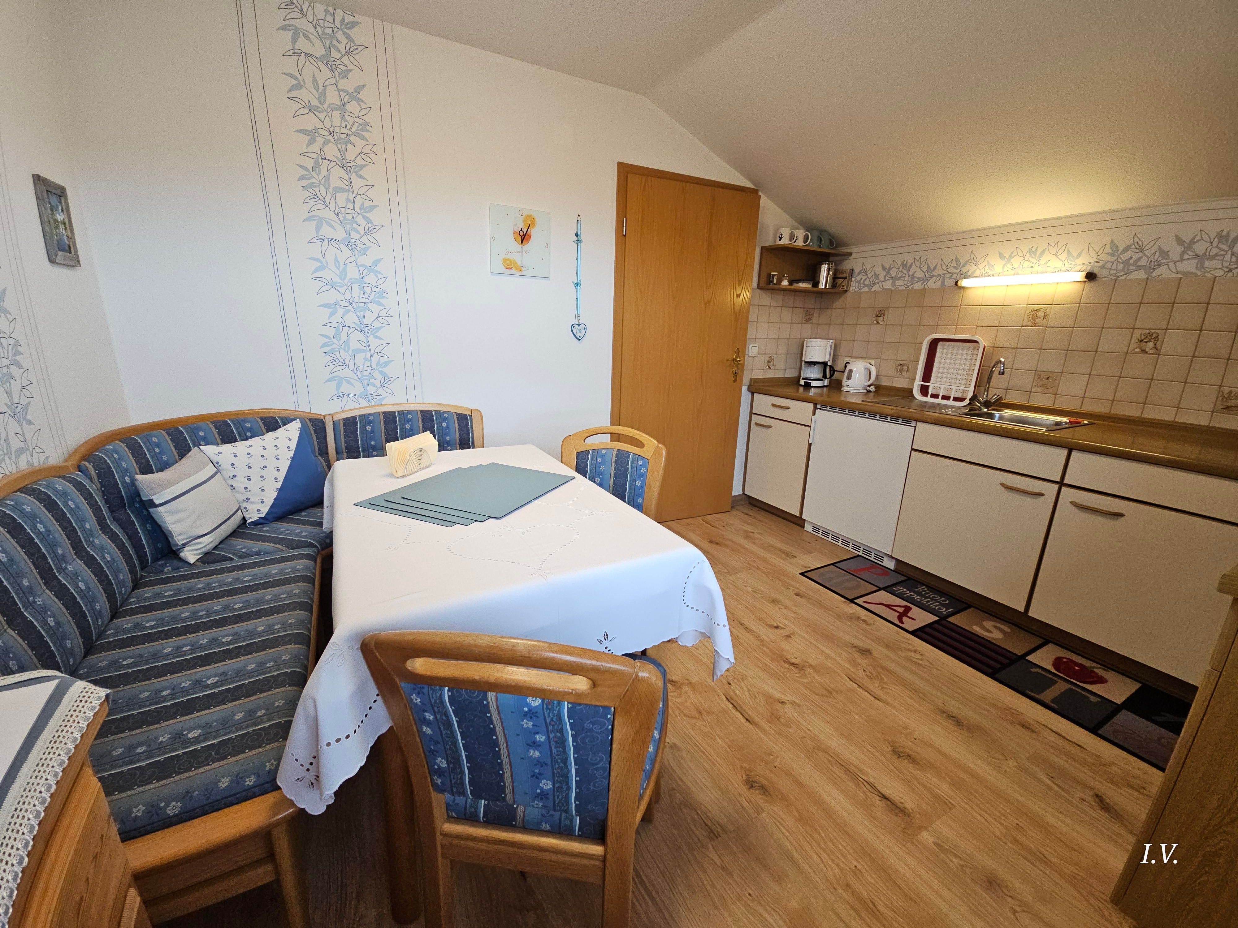 Diese ländlich ausgestattete Obergeschosswohnung in blauem Ambiente bietet Ihnen auf dem Westbalkon ausreichend Platz für sonnige Stunden bei Kaffee u. Kuchen; und ein gemütliches Abendbrot im Sonnenuntergang,mit Blick auf die Bolsterlanger Bergkette. Eine separate voll ausgestattet Küche mit Eckbank, ein Tageslichtbad und ein kuscheliges Schlafzimmer komplettieren die Ausstattung.