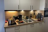 Dieses Zimmer mit kleinem sep. Kinderzimmer (Etagenbett) ist 35qm groß und mit allem Komfort ausgestattet. Neben einer Tee-/Kaffeestation verfügt es auch über einen Balkon, eine Eßecke, 32-LCD-Flatscreen mit DVD-Player, Compact-Stereoanlage sowie eine separate Küche. Ideal für Familien mit 1-2 Kindern, die den Komfort eines Hotelzimmers zu schätzen wissen. Tageslichtbad mit Dusche/WC sowie Fön.