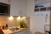 2-Raum-Appartement mit ca. 45qm im 1. Obergeschoß für ein bis vier Personen. Das Appartement verfügt über ein Bad mit Dusche/WC sowie einen Fön, separate Küche mit Microwelle, Balkon, 2x Sat-TV und Compact-Anlage/Radio. Schlafmöglichkeit für dritte und vierte Person auf einer hochwertigen Stockbettschlafcouch (1 x 82cmx190cm (oben) und 1 x 82cmx180cm (unten)).