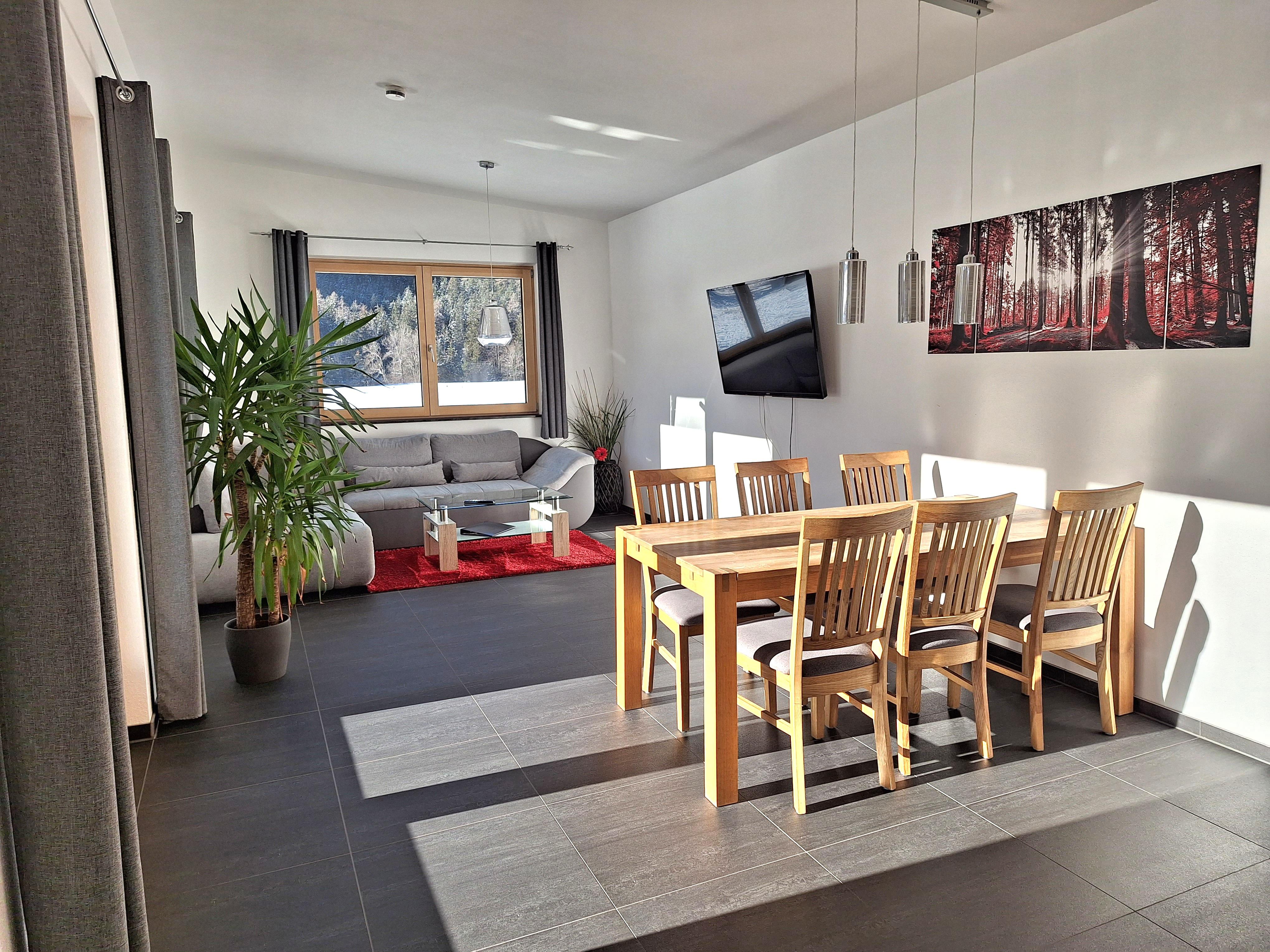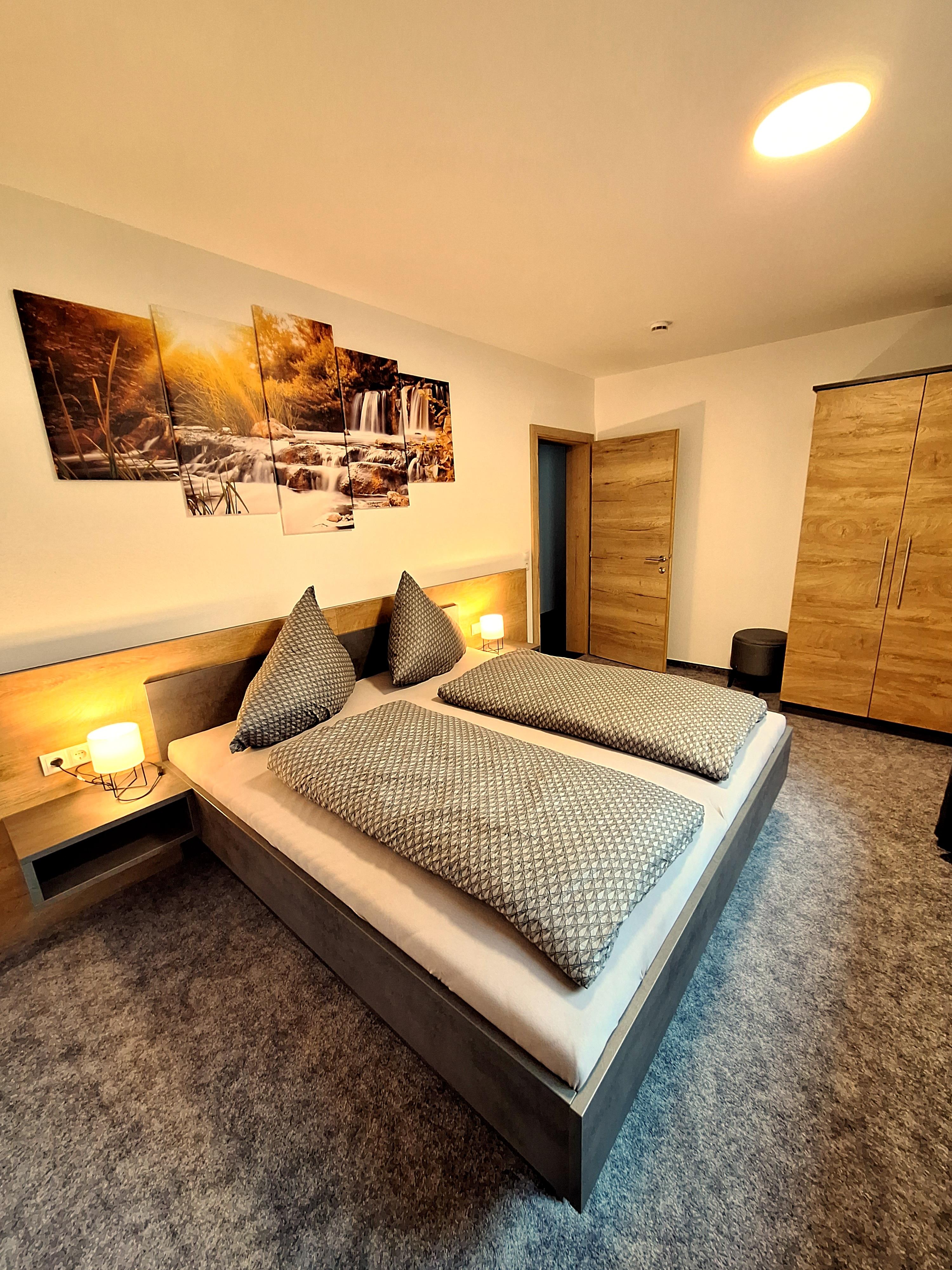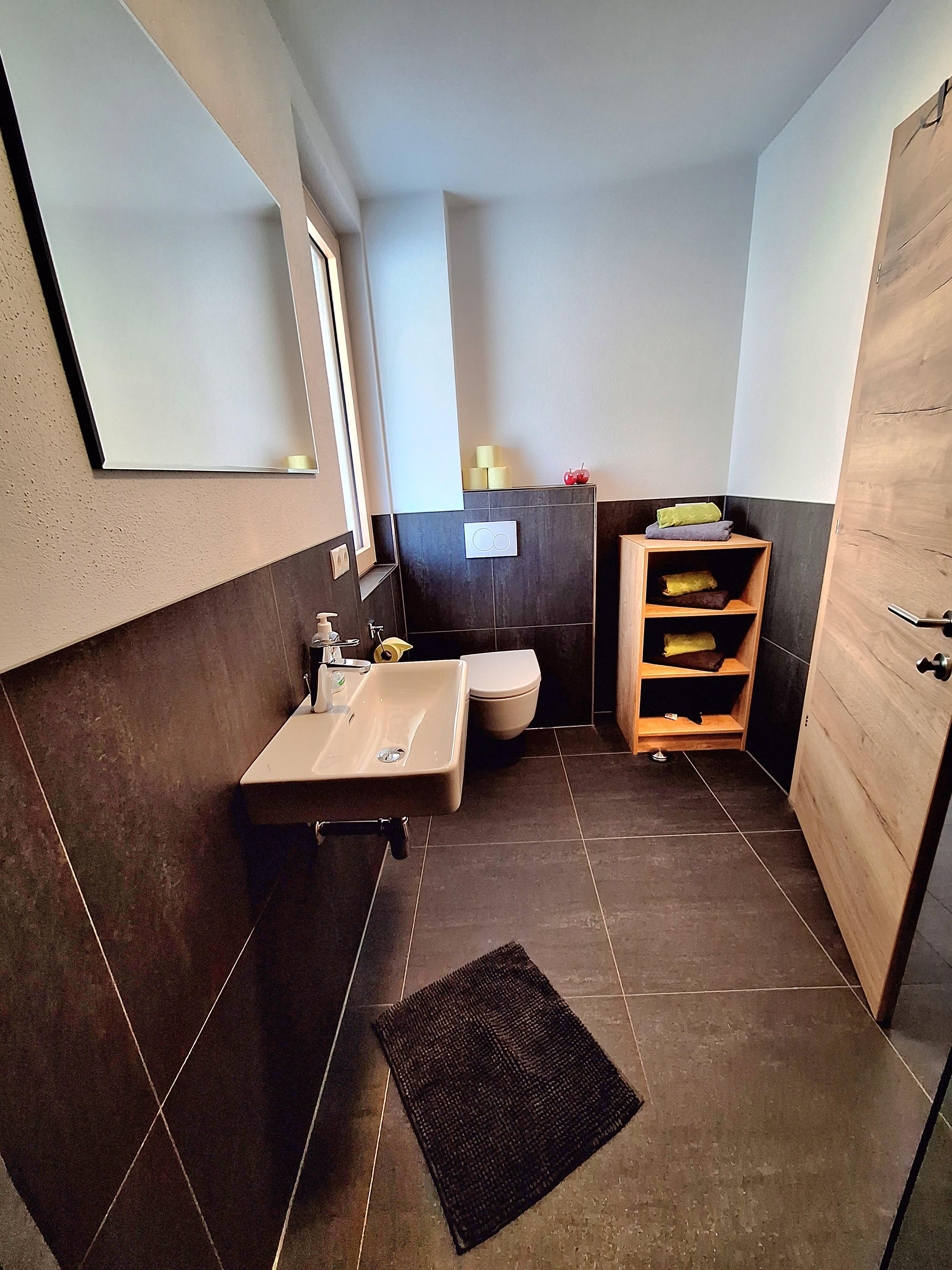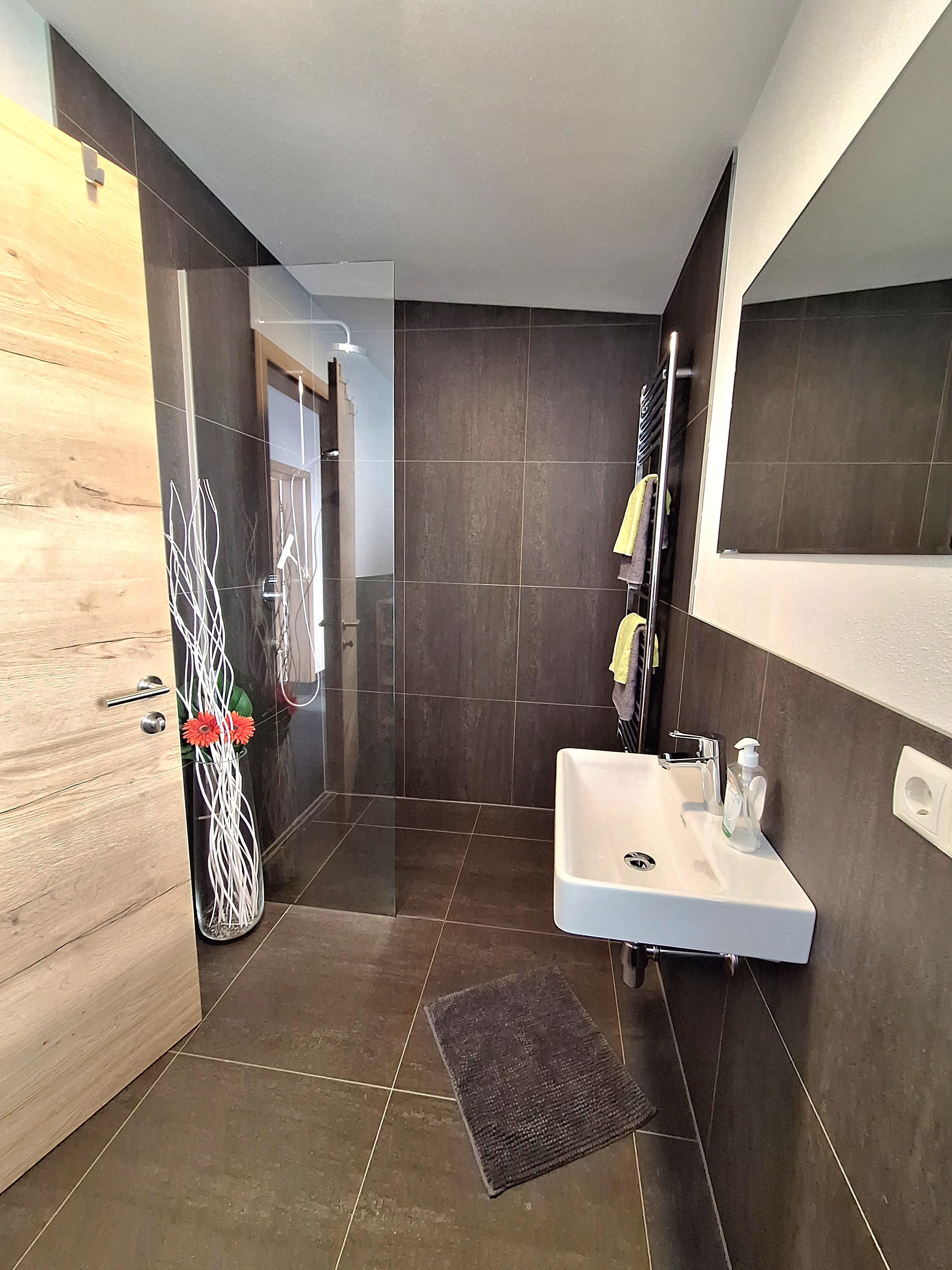 NEUE, liebevoll eingerichtete Ferienwohnung mit ca. 72 m² ist ideal für bis zu 5 Personen: 2 Schlafzimmern mit Doppelbett; 1 Einzelzimmer; 1 große komplett ausgestattete Wohnküche mit Koch-, Ess- und Wohnbereich; 1 Badezimmer mit Dusche und WC, seperater Eingang, große Dachterrasse mit ca. 35 m². In den doppel Zimmer ist Tv vorhanden.