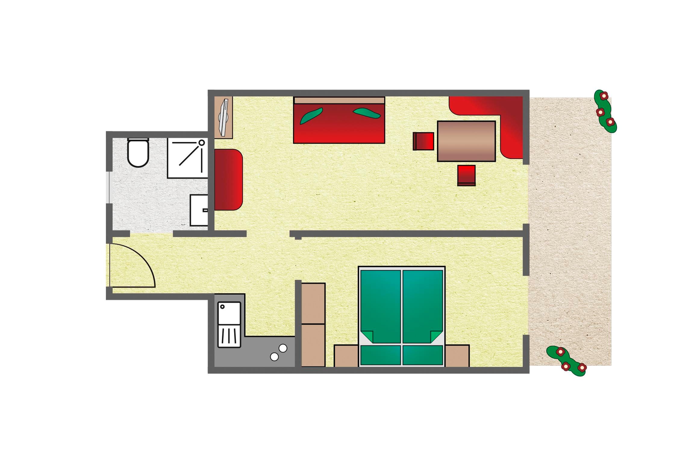 Ferienwohnung 45qm 3*** DTV Klassifizierung, im Nebengebäude,Südseite,Terrasse und Garten,sonniger Blick zu den Balderschwanger Bergen und Richtung Dorf.Ein gemütlicher Wohnraum, Essecke helle Landhaus Fichtemöbel,Sat-TV Flachbildschirm,Radio.1Schlafzimmer, Fußende der Betten offen.Safe. Küchenzeile mit Mikro, Kaffemaschine,Eierkocher,Toaster, Wasserkocher.D/WC mit Haarföhn und beleuchteten Kosmetikspiegel,Handtuchhalter. Desiner Bodenbelag.