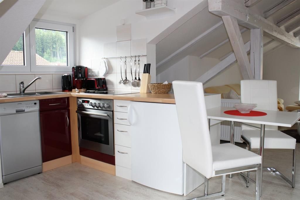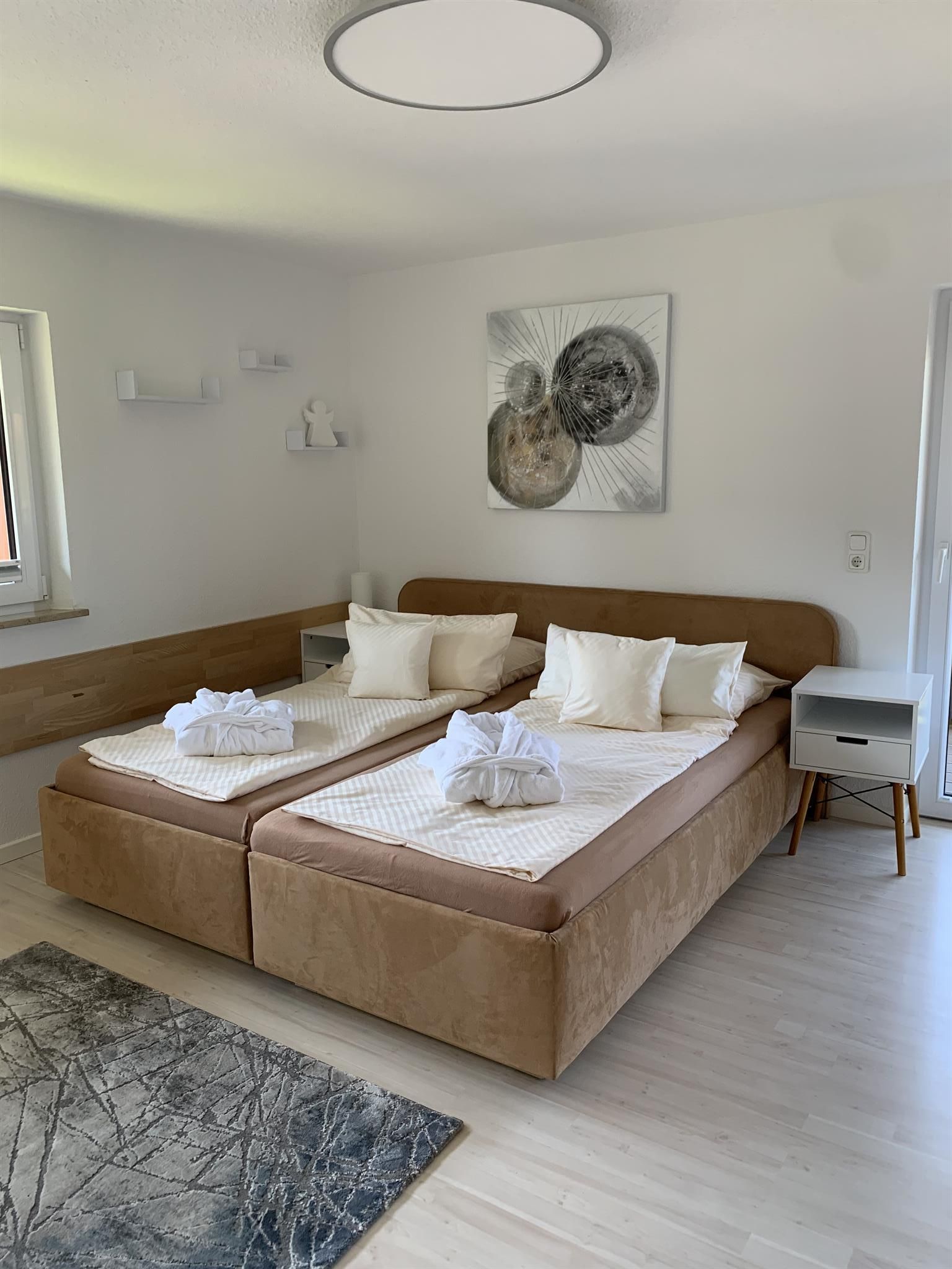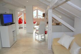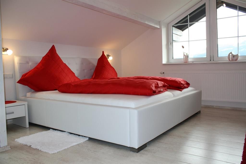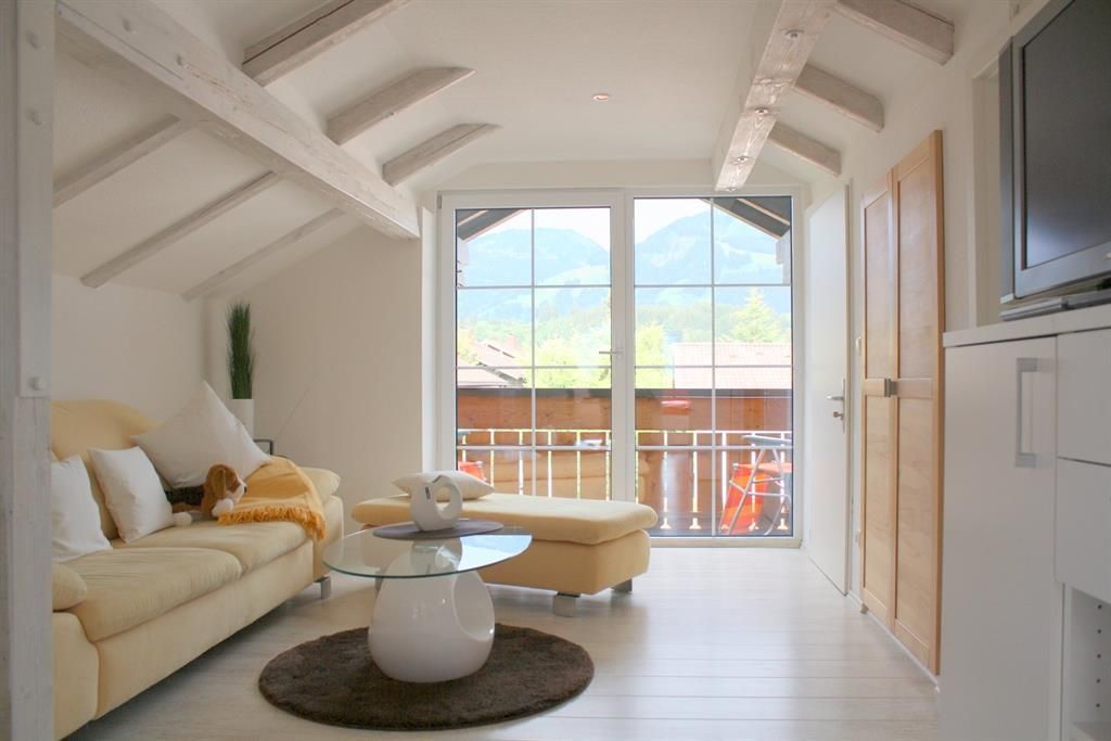 Unsere modern mit viel Ambiente ausgestattete 3-Sterne-Ferienwohnung im Dachgeschoss wurde im August 2011 fertig. Ideal für junge oder jung gebliebene Gäste. Großzügige Einraumwohnung mit Blick in die Berge. Im modernen Bett (200cmx200cm) wecken Sie die ersten Sonnenstrahlen. Gemütliche Sitzgelegenen, große Couch mit Ottomane mit Blick in die Berge. 2 Flat-Screen TV, Dusche, WC, Küche.