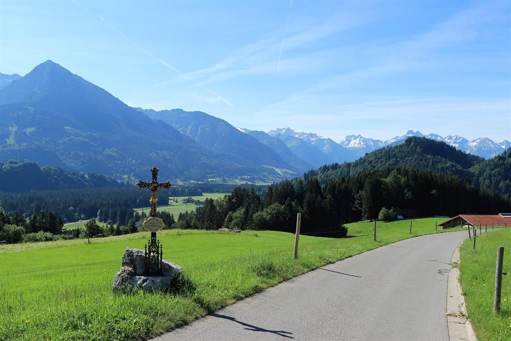 Urlaub in den Hörnerdörfern, genießen und entspannen. Umgeben von einem wundervollen Bergpanorama und saftigen Allgäuer Wiesen liegt unsere schöne neu renoviert Ferienwohnung Trettachblick in Fischen im Allgäu.