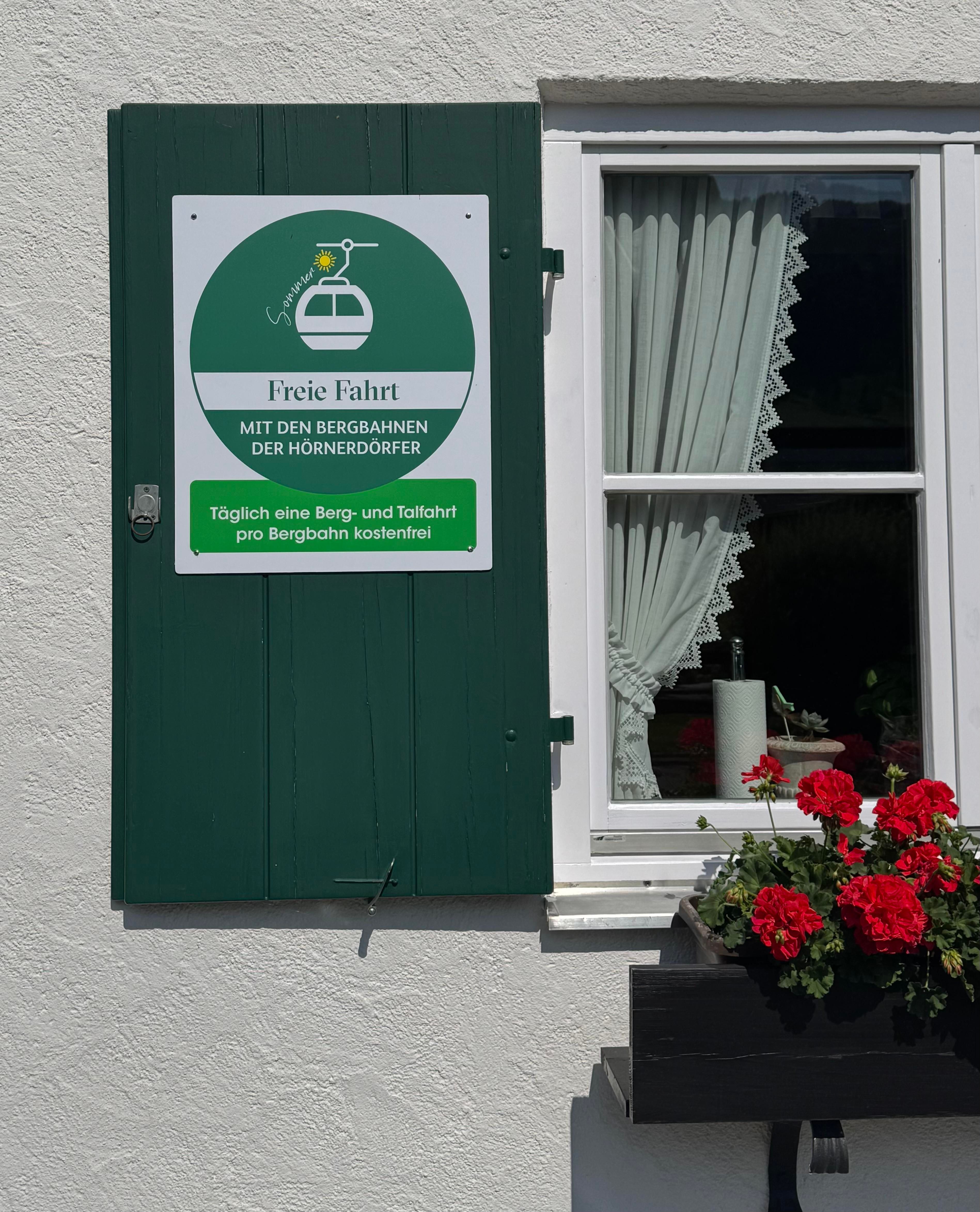 Von Mai bis November Hörnerbergbahnen 1 mal pro Tag freie Fahrt. W-LAN kostenlos, Infrarotkabine kostenlos.