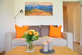 Die Ferienwohnung Herzstück für 2 bis 4 Personen mit einem großzügigen Wohn-/Schlafraum, separater Küche und einem kleinen Bad mit Duschbadewanne ist modern und freundlich ausgestattet und bietet alles, was man für eine entspannte Auszeit im schönen Oberallgäu braucht. Der große Ost-Balkon mit dem unverbauten Ausblick auf die Sonnenköpfe bis zu den Oberstdorfer Bergen ist das besondere Markenzeichen der Wohnung.