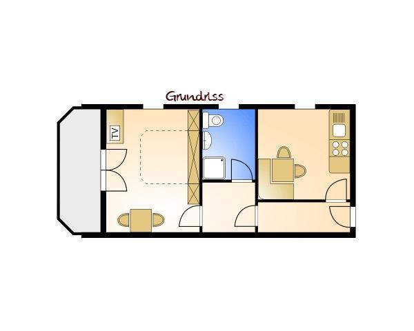 • Wohn- Schlafraum mit einem normalen Doppelbett und einer 2-Sitzer-Couch, Sat-TV