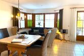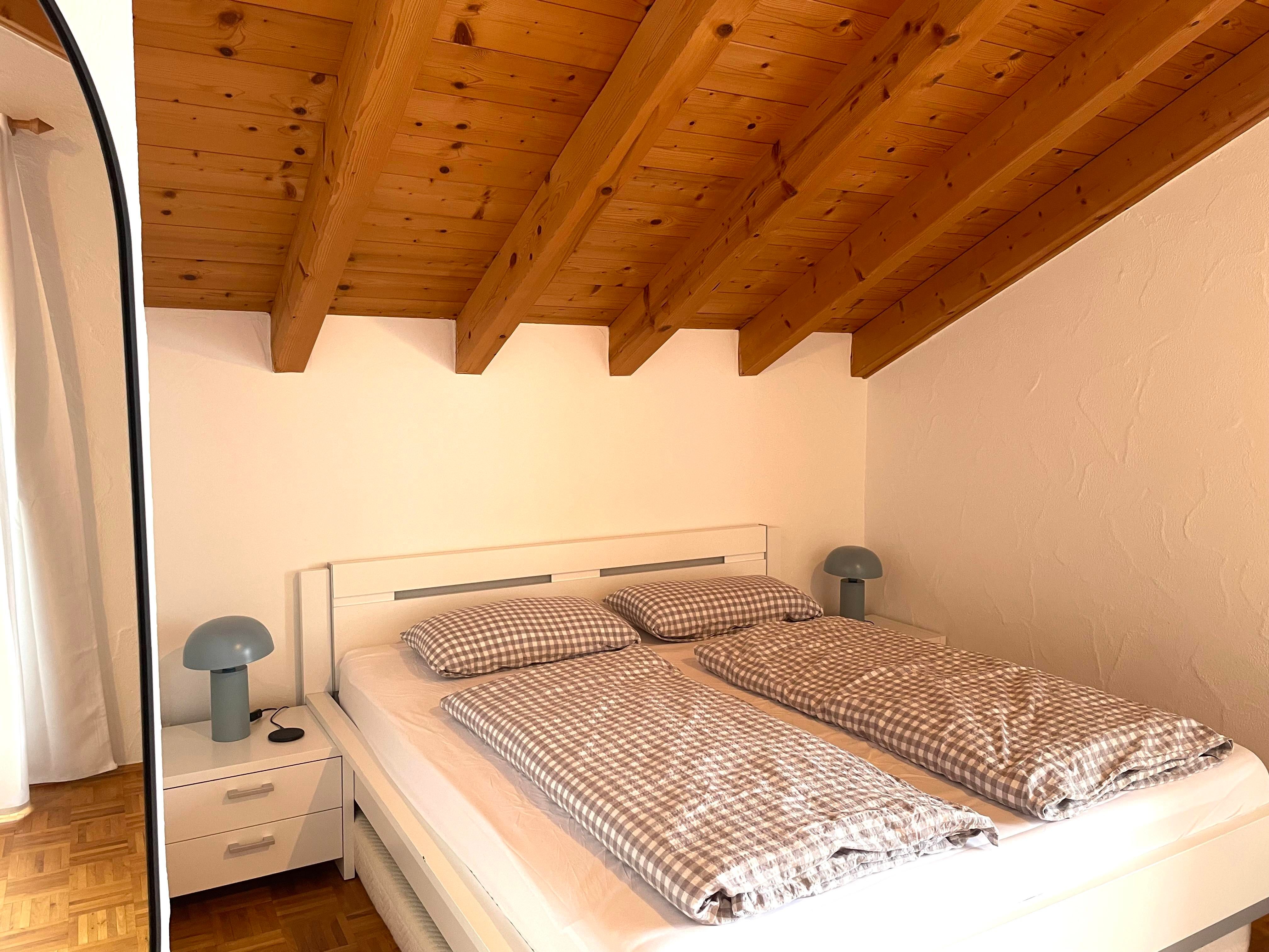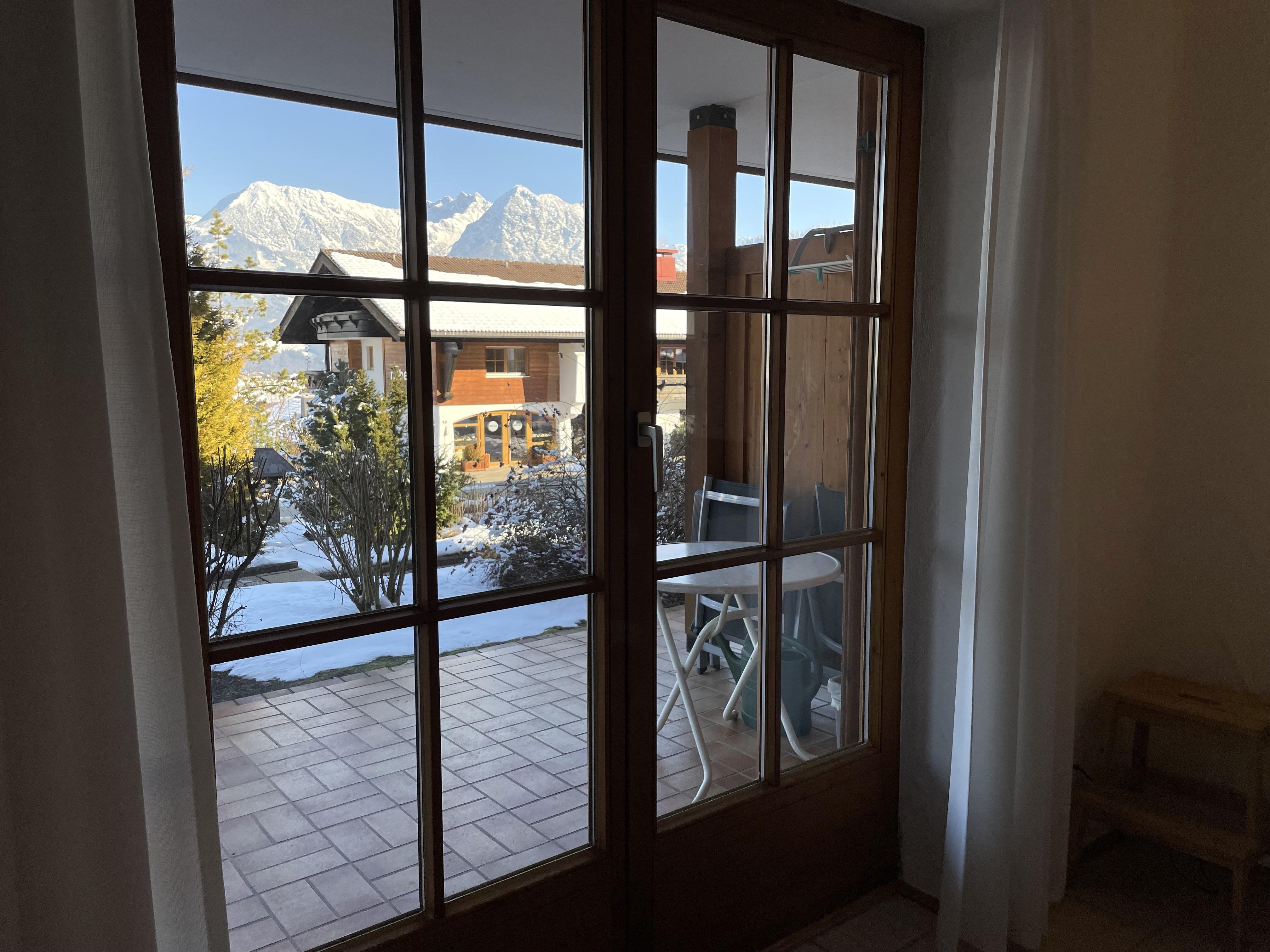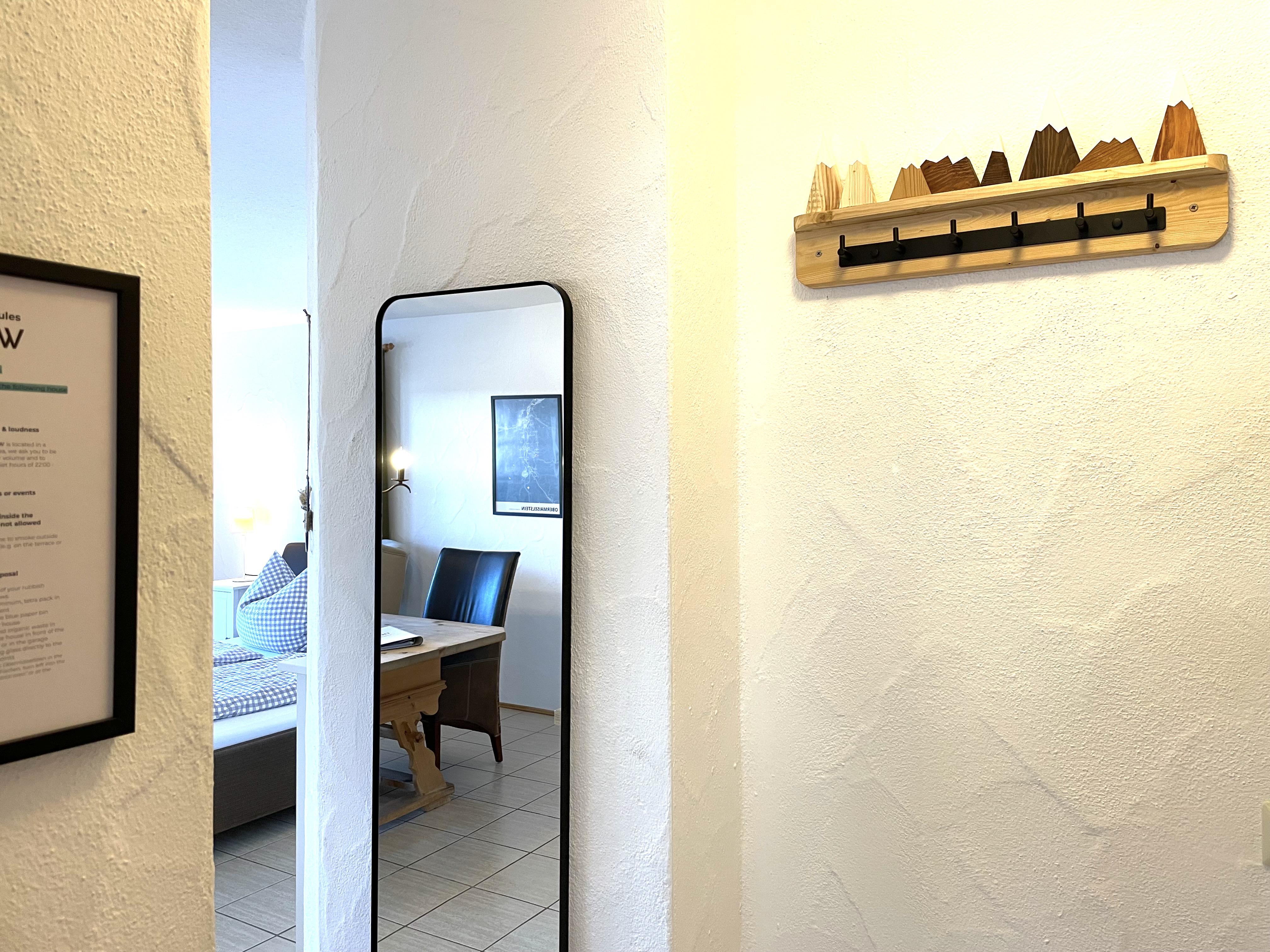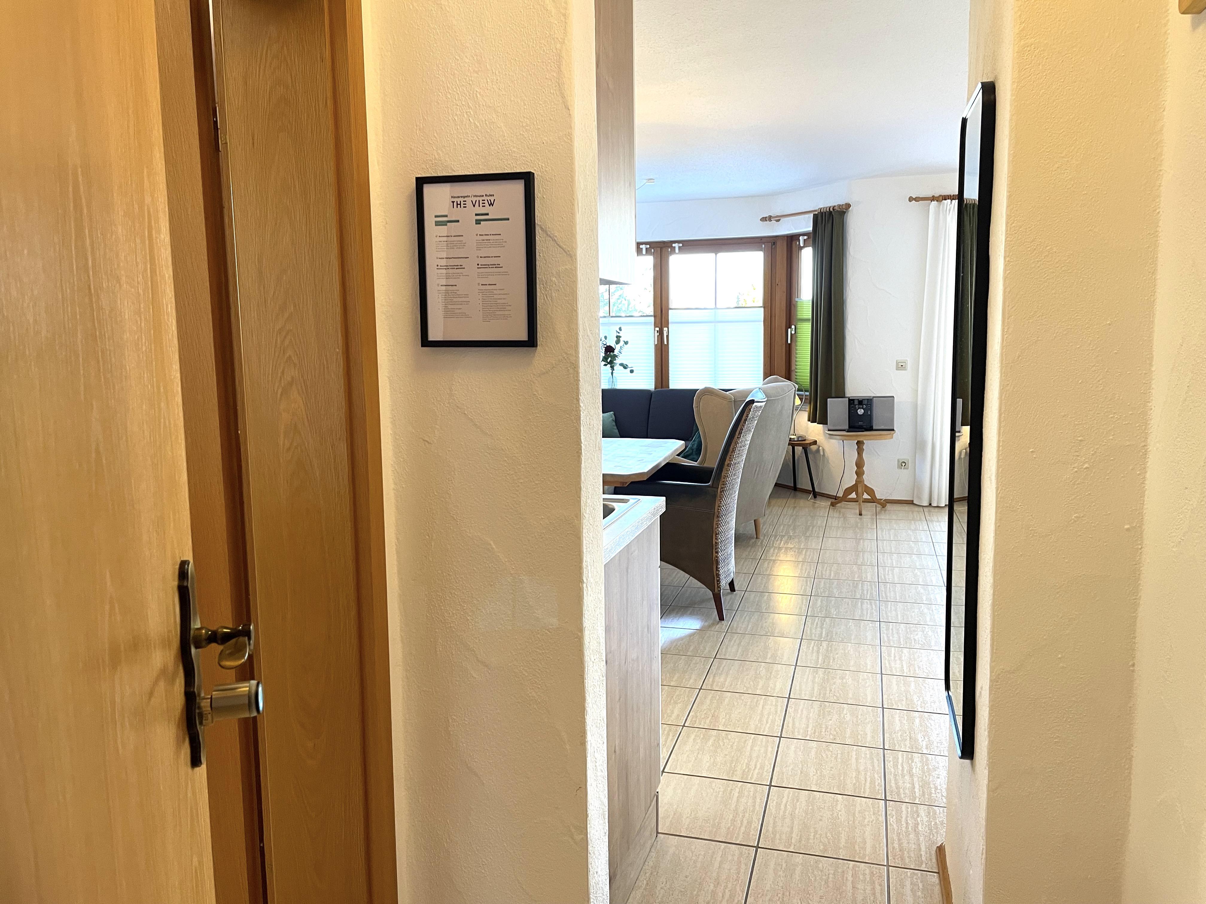 THE VIEW - Fewo Besler Unsere 34m² große EG-Wohnung Besler erwartet euch mit einem schönen Wohn-/Essbereich, einer offenen und voll ausgestatteten Küche, die nahtlos in das Wohnzimmer mit echtem Doppelbett, einer Couch und Ohrensessel übergeht, von wo aus ihr einen wunderschönen Blick in die Berge genießen könnt. Über einen kleinen Flur gelangt ihr in das Badezimmer mit Dusche/WC.