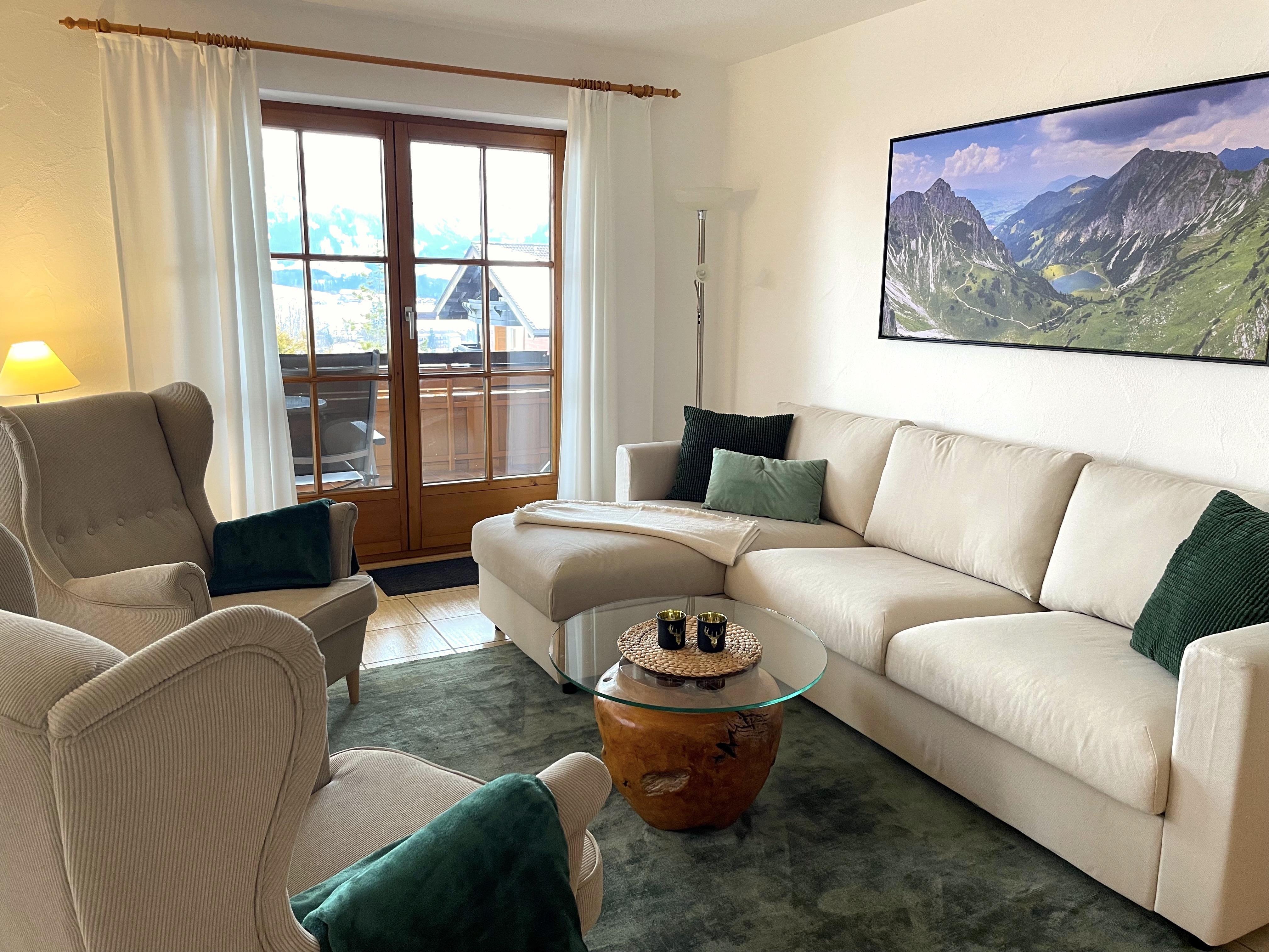 Jede unserer Wohnungen bietet einen wunderschönen Blick auf die Allgäuer Berge. Aufgrund dieses Ausblicks nennen wir das Haus liebevoll Landhaus Obermaiselstein THE VIEW.